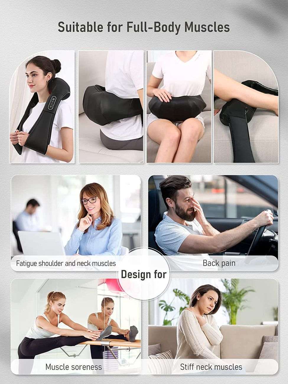 Wide Applications: Use this back and neck massager on a sofa, recliner, office chair or car chair with car adapter for ultimate comfort anytime and anywhere.