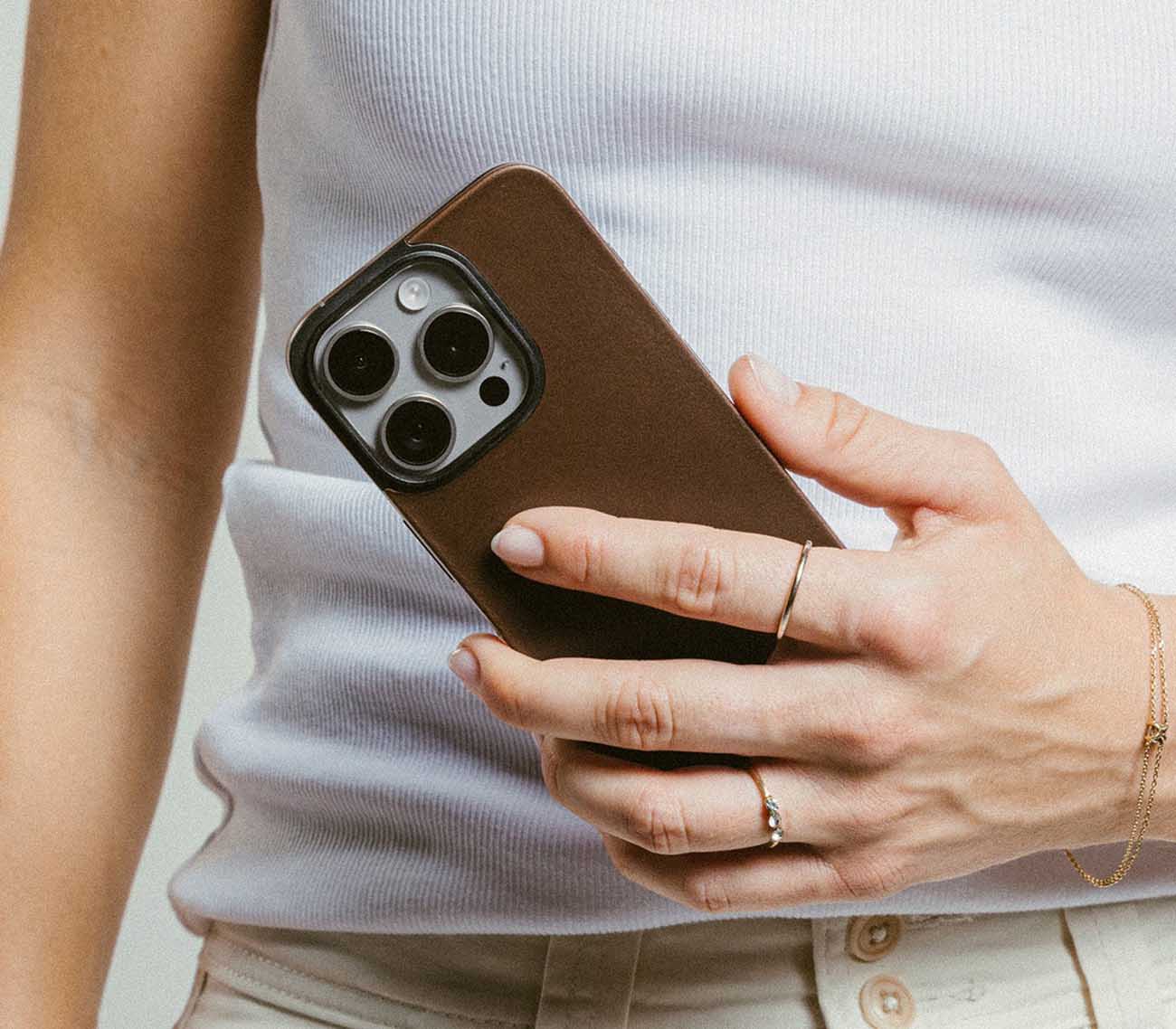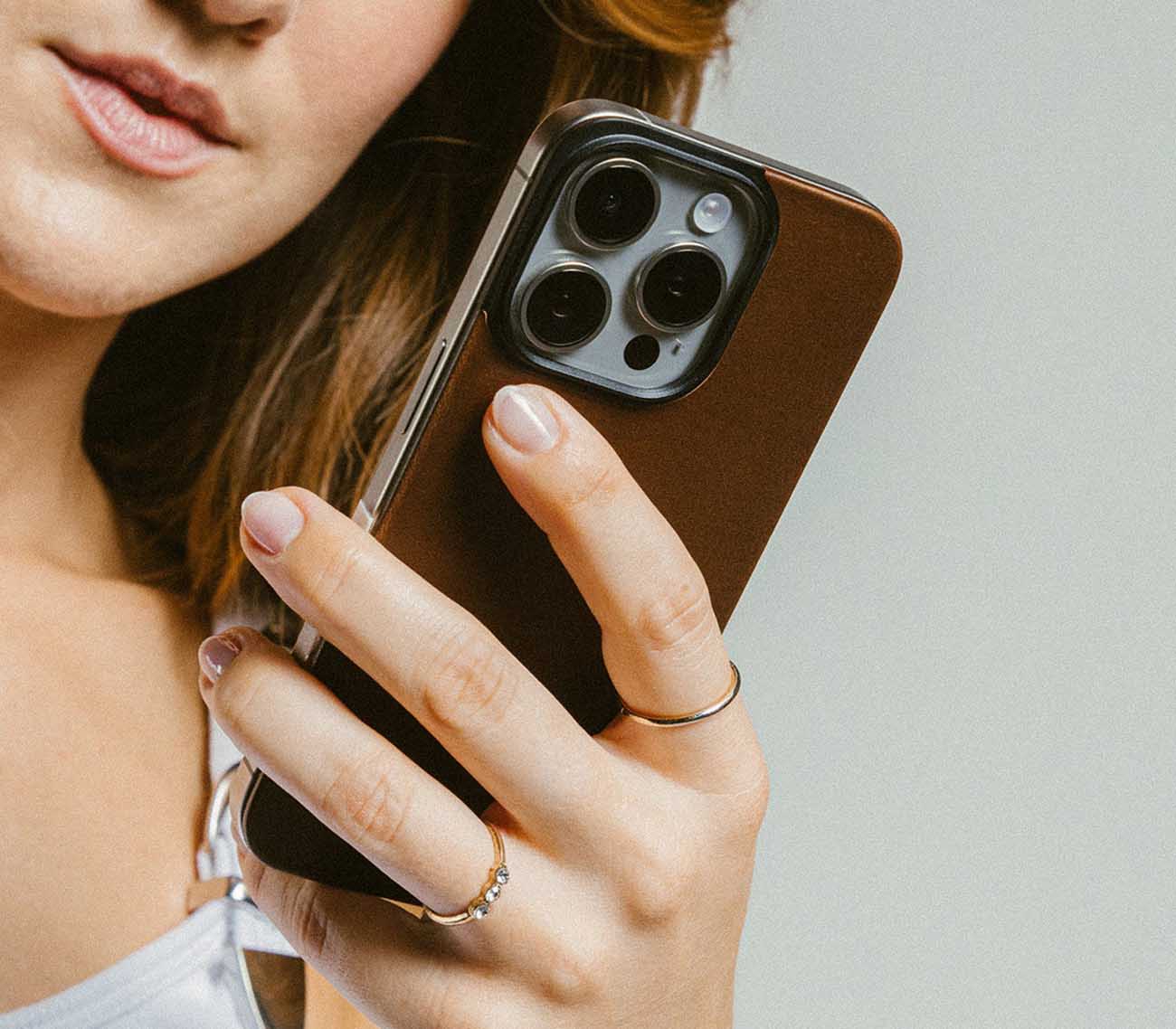 Nomad Leather Back for iPhone 16 Pro Max / Magnetic / Brown Leather in Qatar