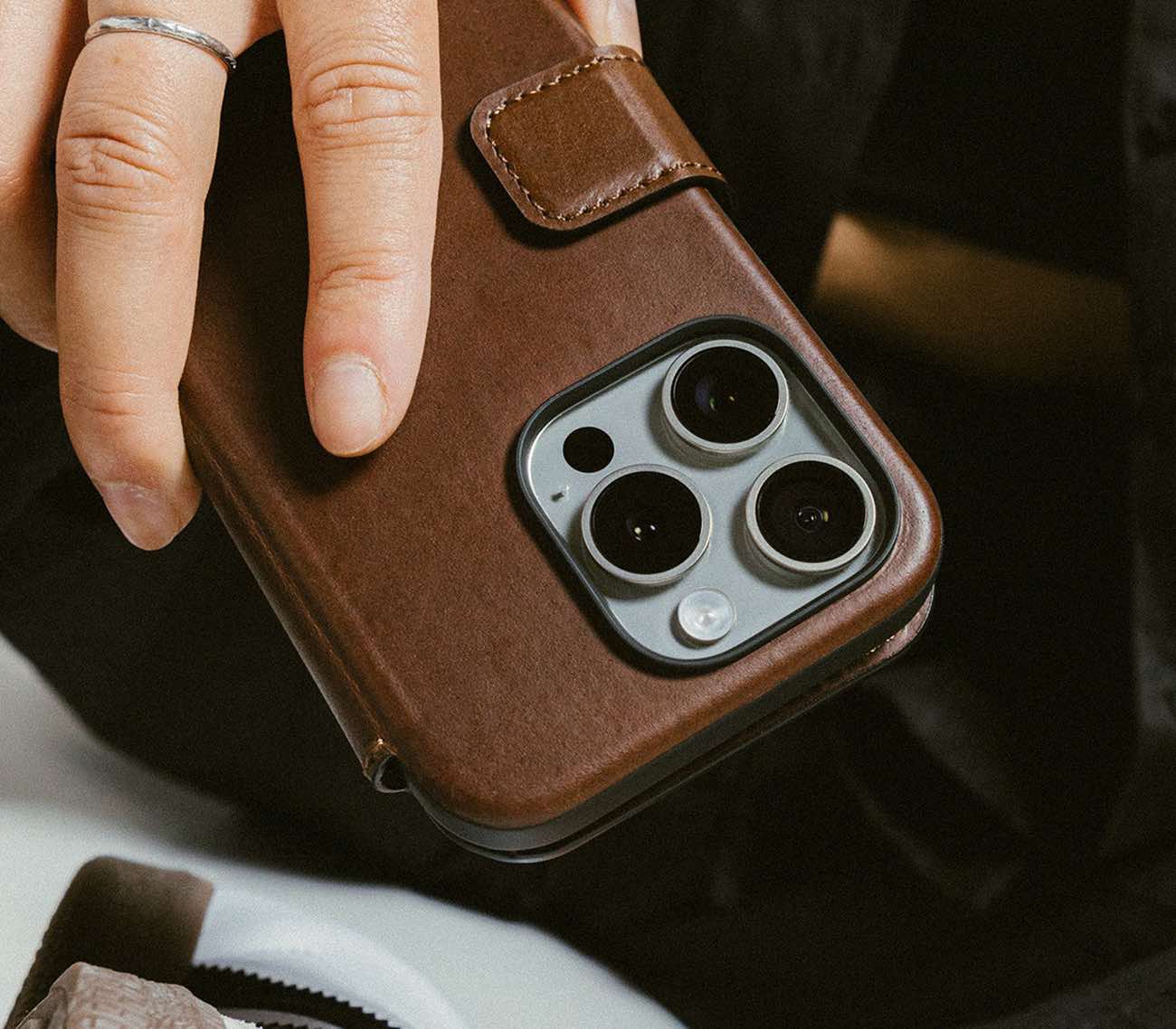 Nomad Leather Folio Case for iPhone 16 Pro Max / Built-in Wallet / MagSafe / Brown in Qatar