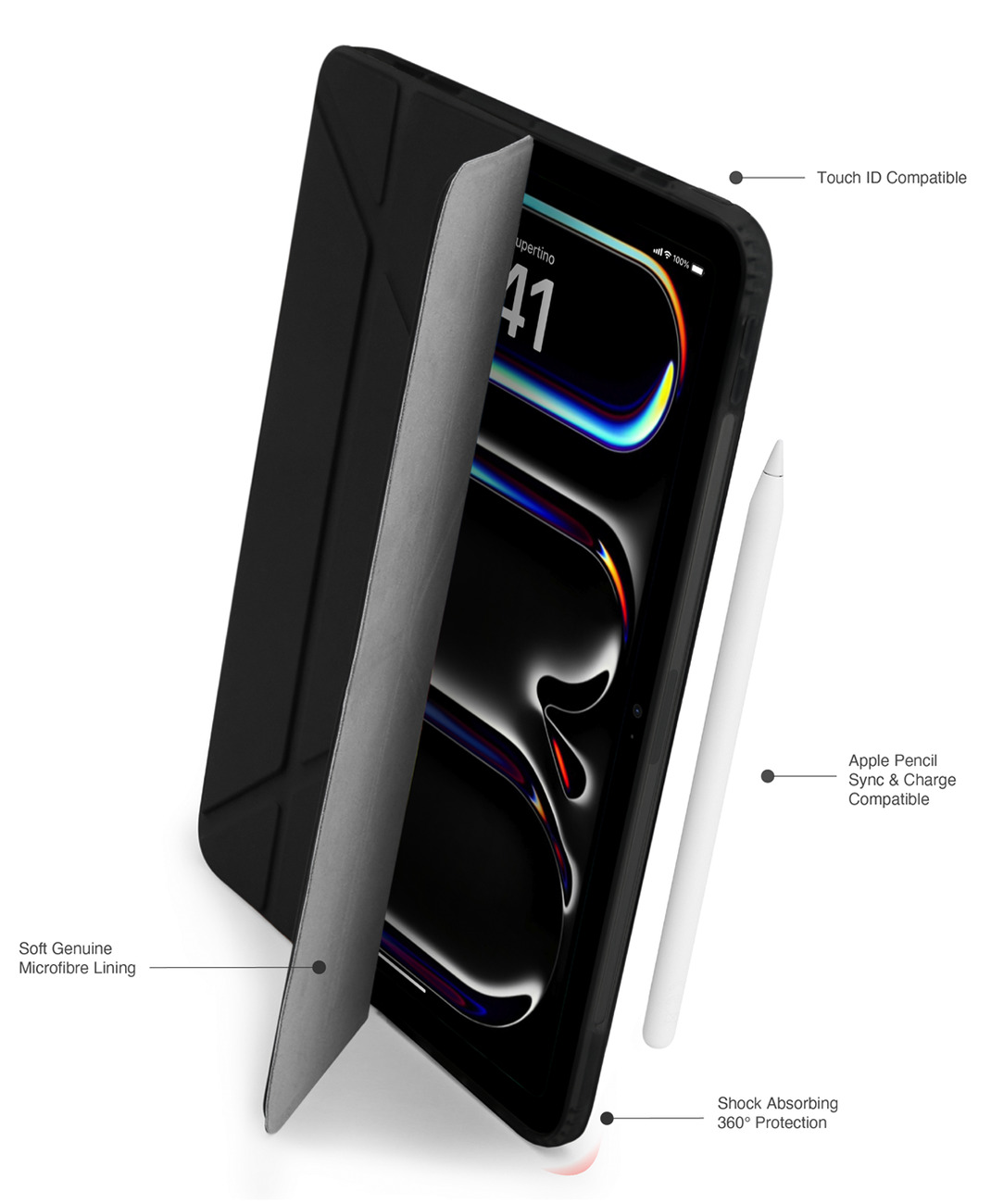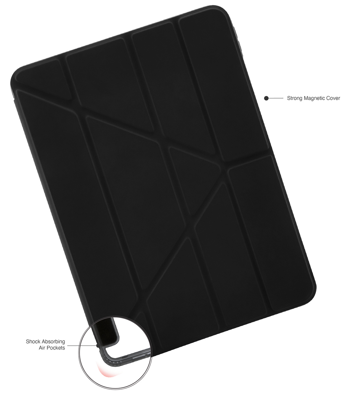 The front cover can be folded to position the iPad in portrait or landscape mode at multiple angles for your convenience.