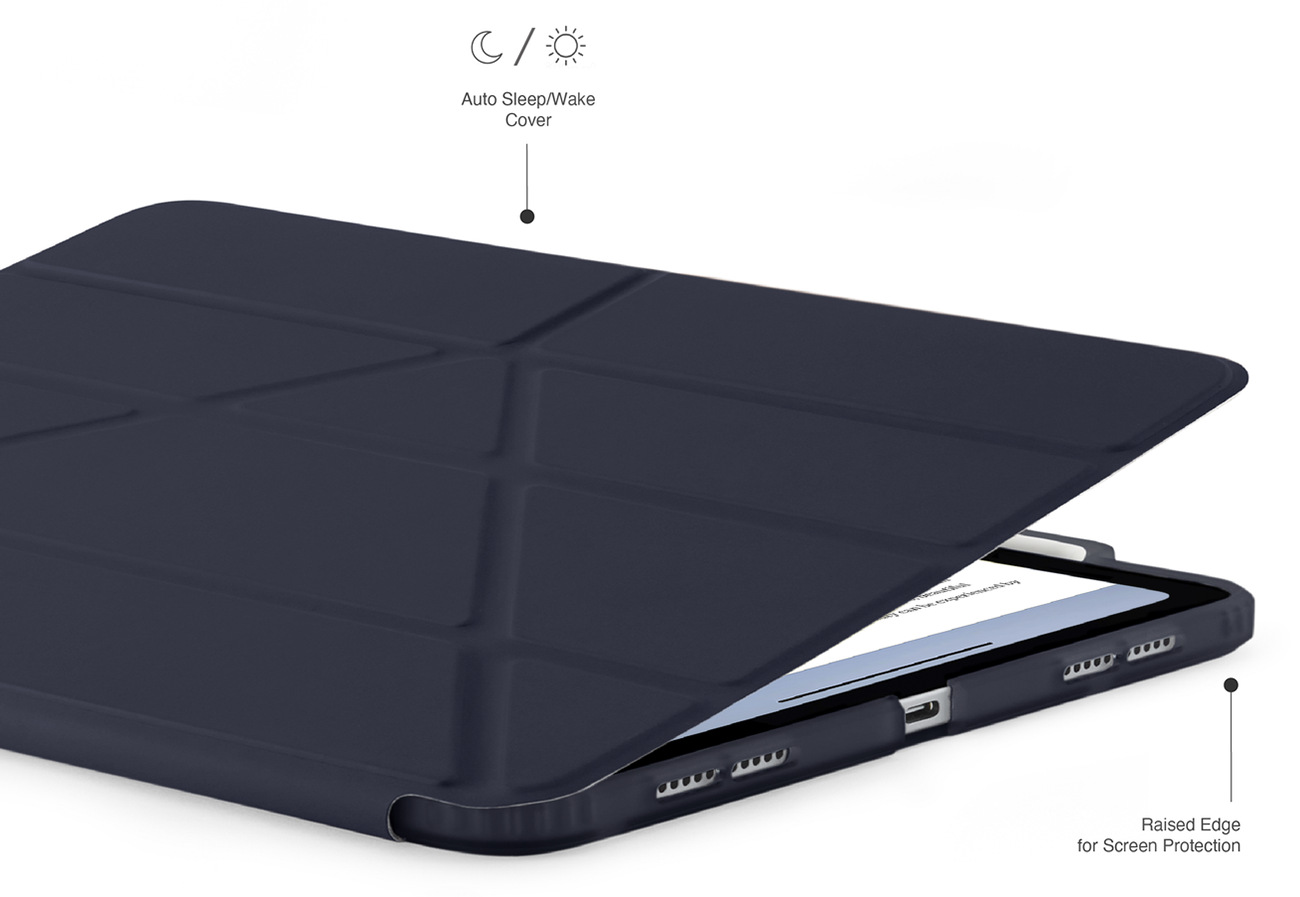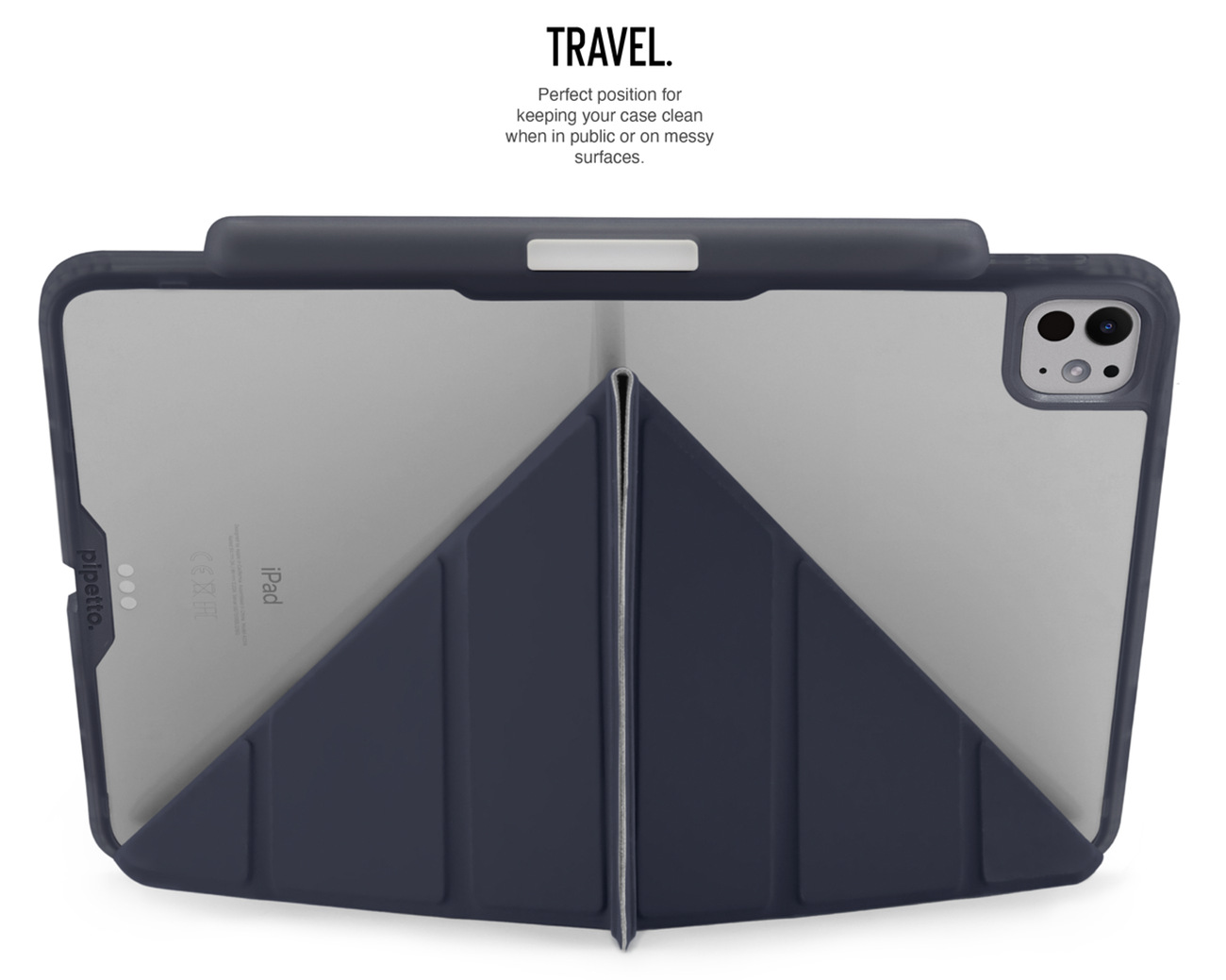 The front cover can be folded to position the iPad vertically or horizontally at multiple angles to suit your use.