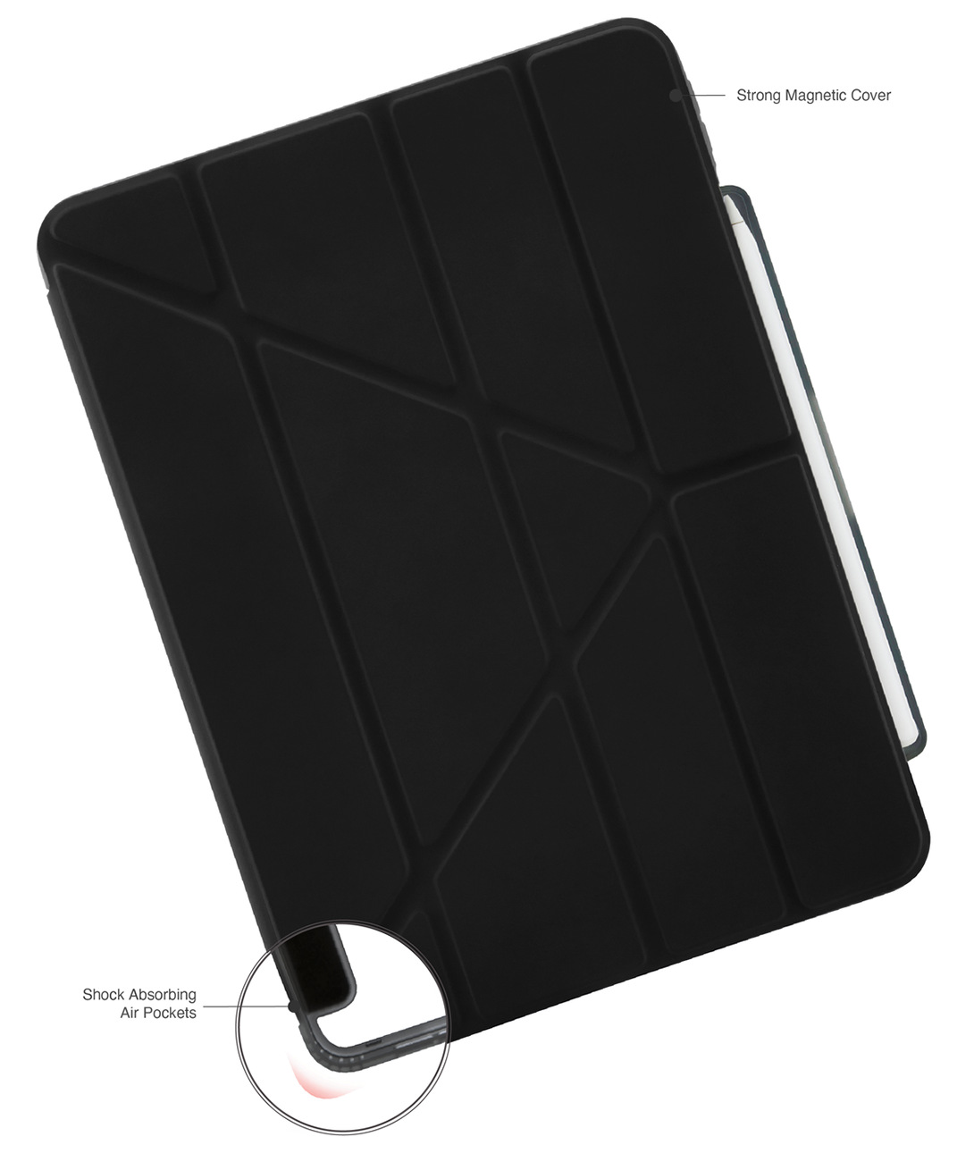 Includes a slot for storing the Apple Pencil .. preventing it from getting lost.