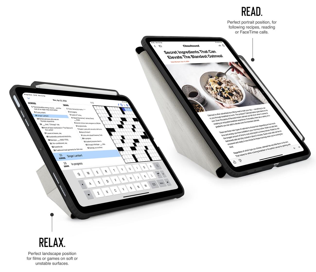 The front cover can be folded to position the iPad in portrait or landscape mode at multiple angles for your convenience.