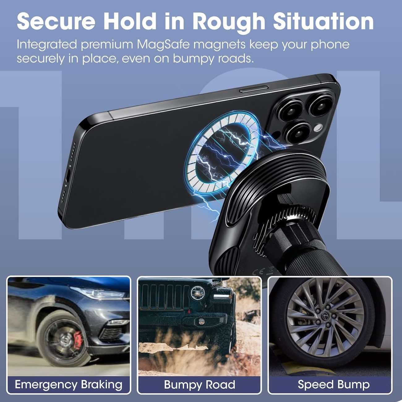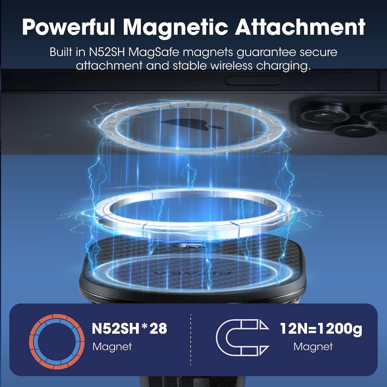 Supports MagSafe magnetic technology .. compatible with iPhone 12 .. 13 .. 14 .. and 15 in all models and sizes.