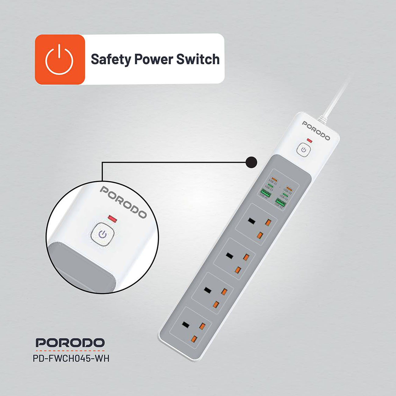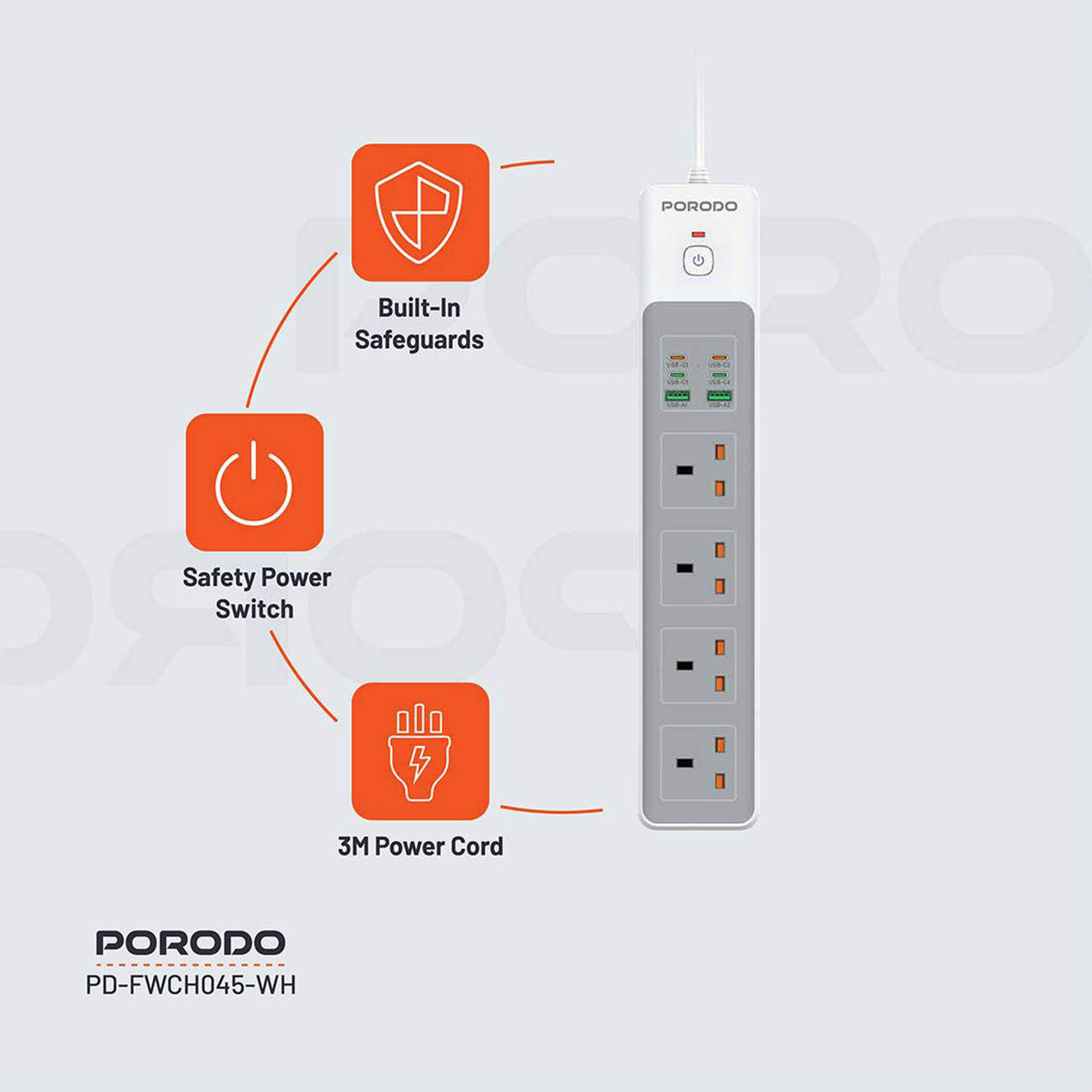 Offers 4 triple AC power sockets .. 2 USB ports .. and 4 Type-C ports.