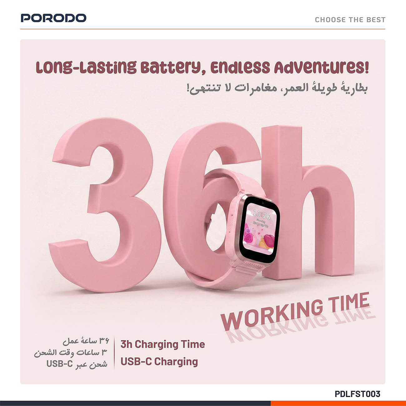 Porodo 4G Kids Smart Watch / GPS & Video Calling / Water Resistant / App Control / Pink