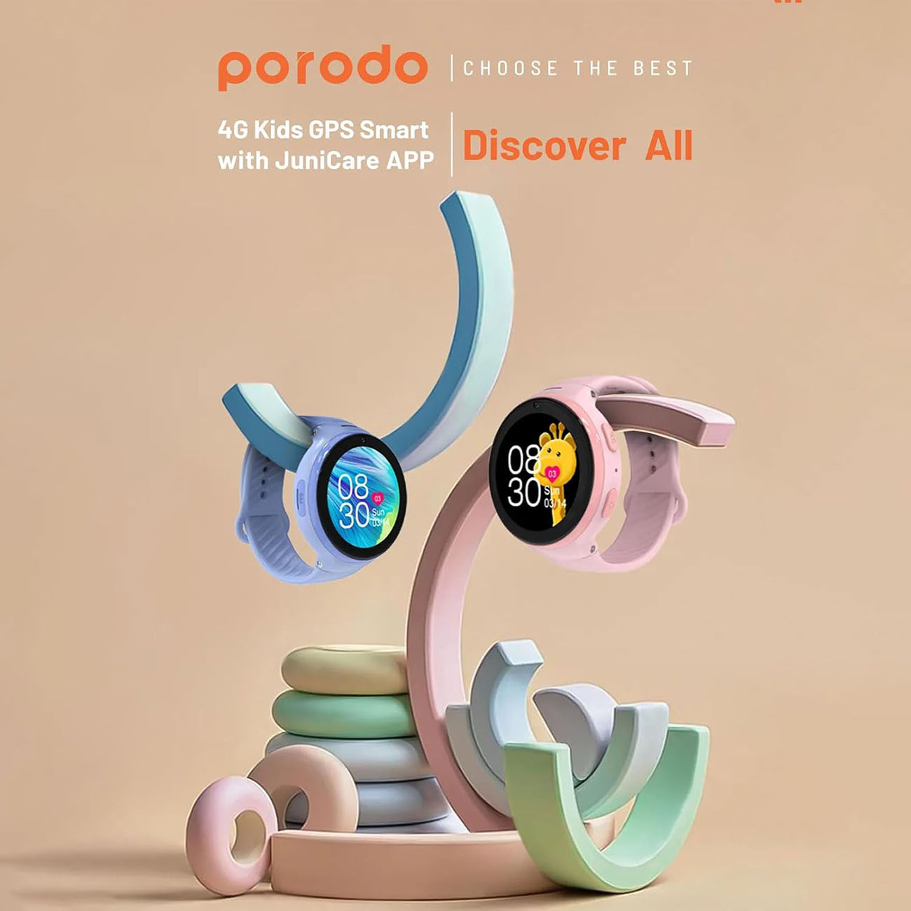 Porodo Junicare Kids Smartwatch / 1.85 inch Display / GPS Tracking / Supports Video Calls / Pink