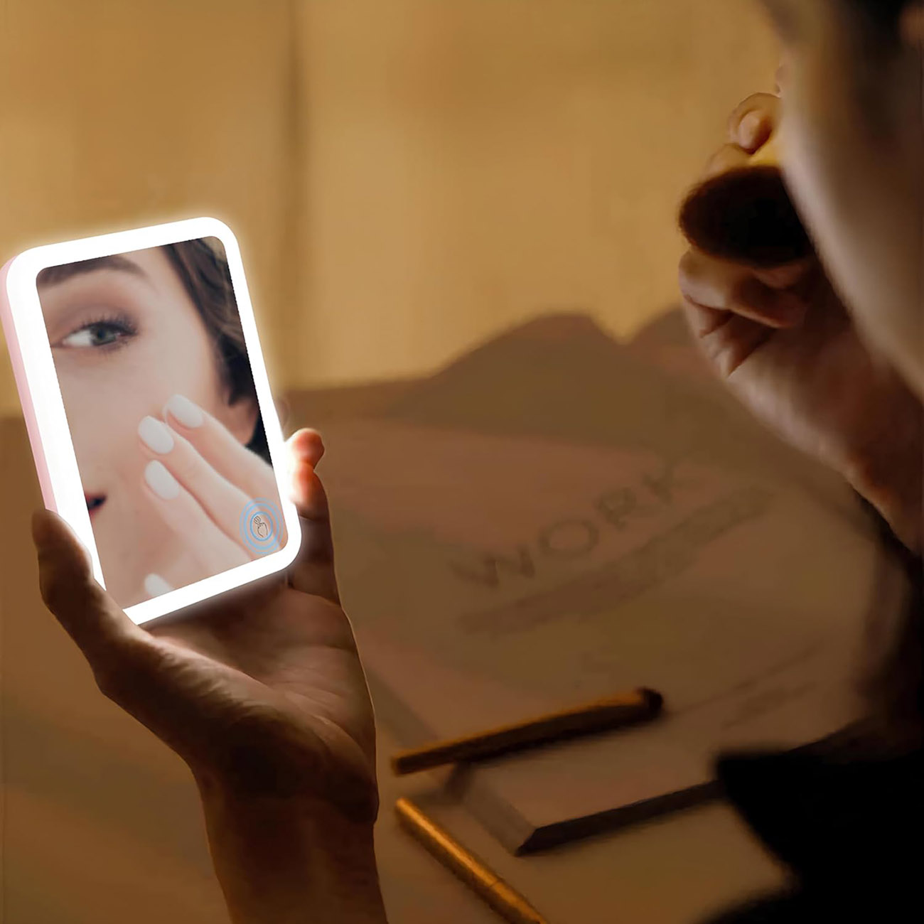 Built-in mirror for personal use on the go.
