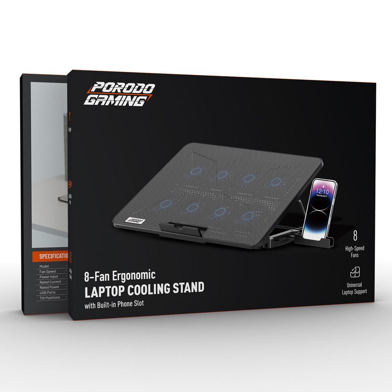Porodo Magnetic Phone Stand / Mounts On Dashboard / Charger With Cooling Fan / 15W Power