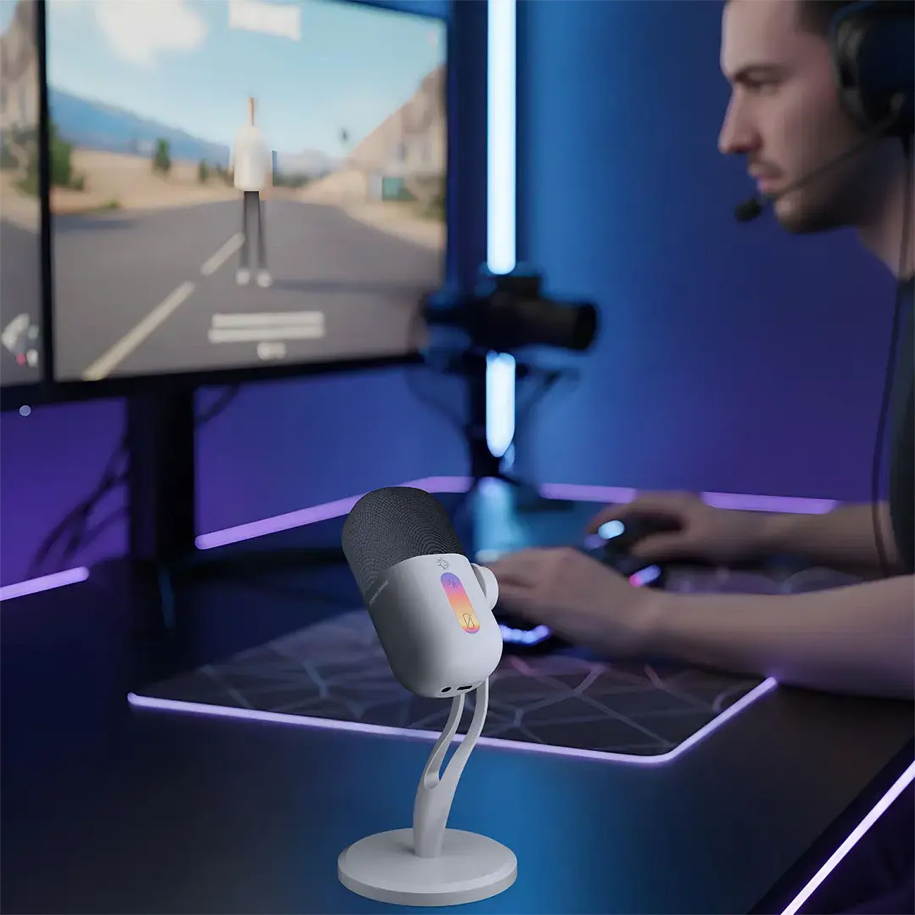 Porodo Elyx Microphone / RGB Light / Noise Reduction Button / Support Windows & iOS / Black