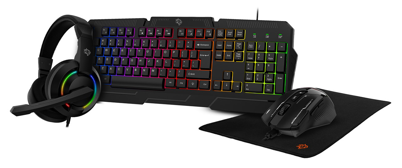 Includes a keyboard .. mouse .. headset .. and mouse pad .. everything you need in one package.