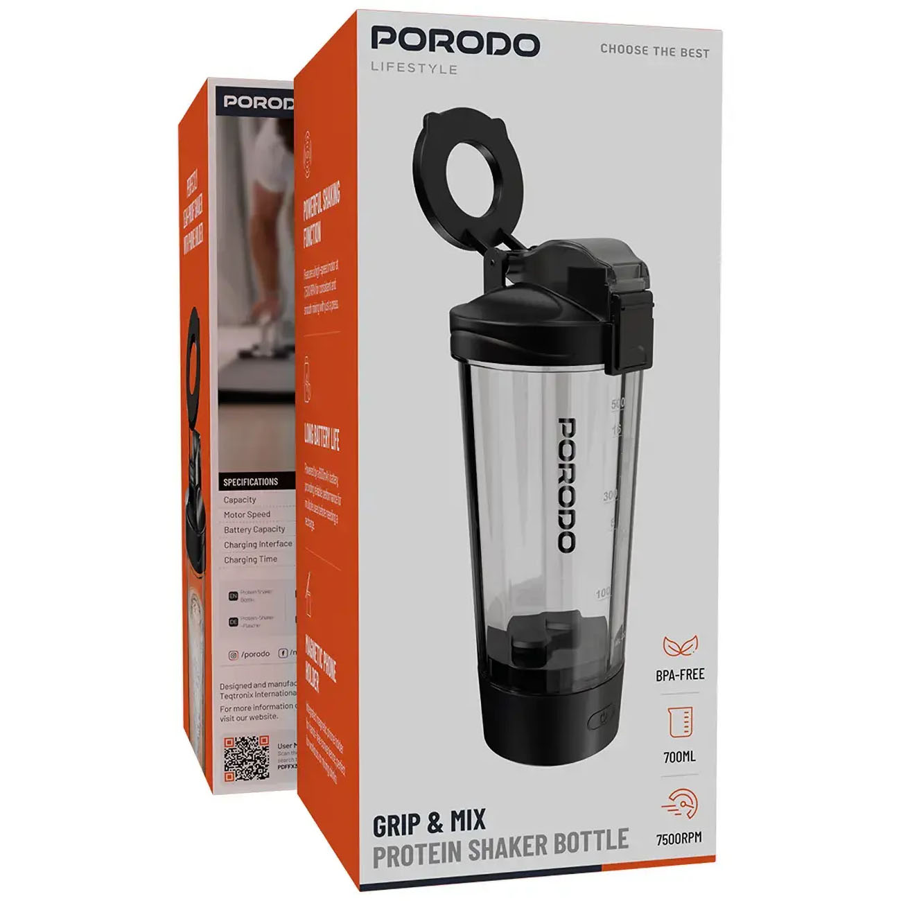 Porodo Fruit Juicer & Blender / 700ml Capacity / Portable / Battery Operated / Black
