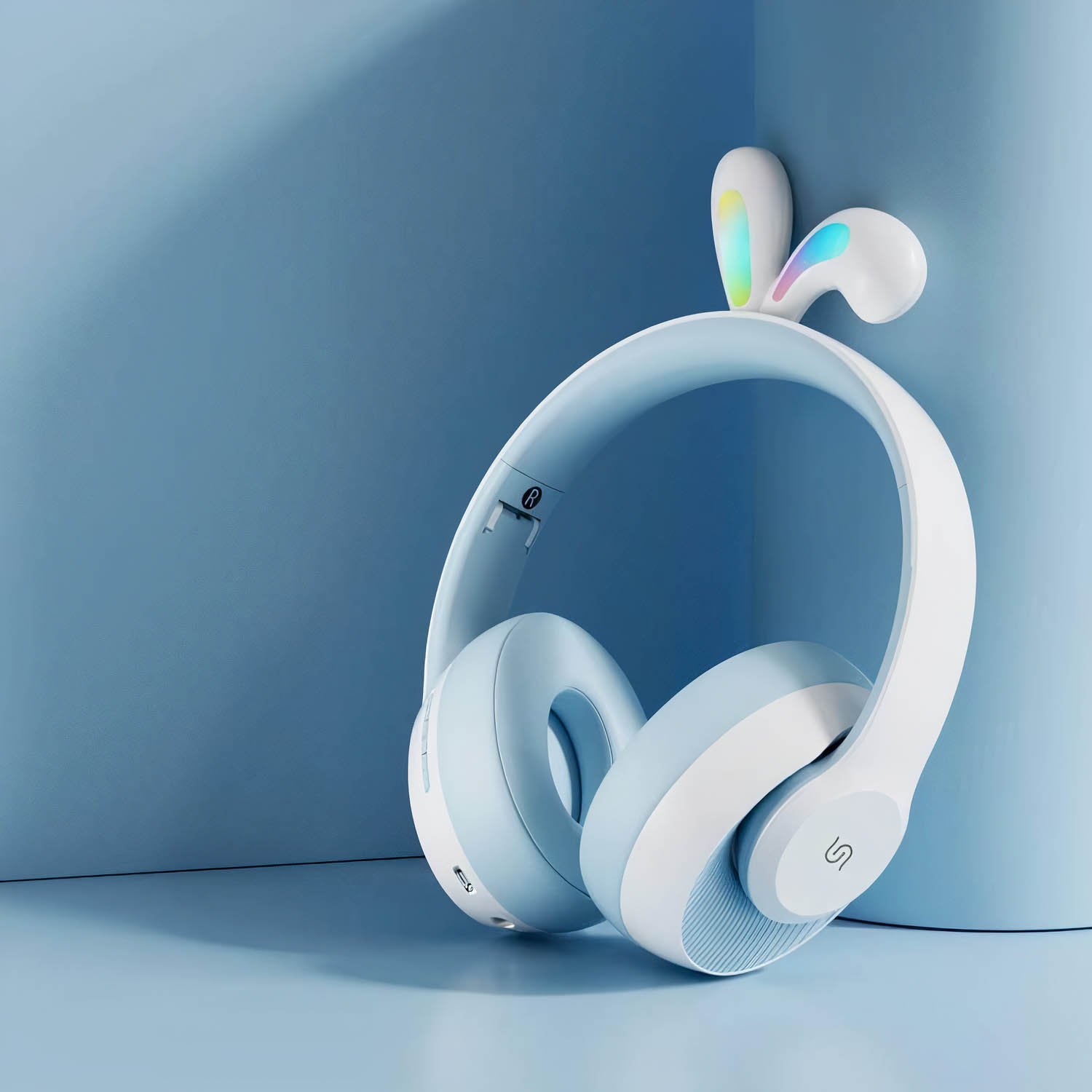 Wireless headphones specially designed for kids, made from soft and comfortable materials.