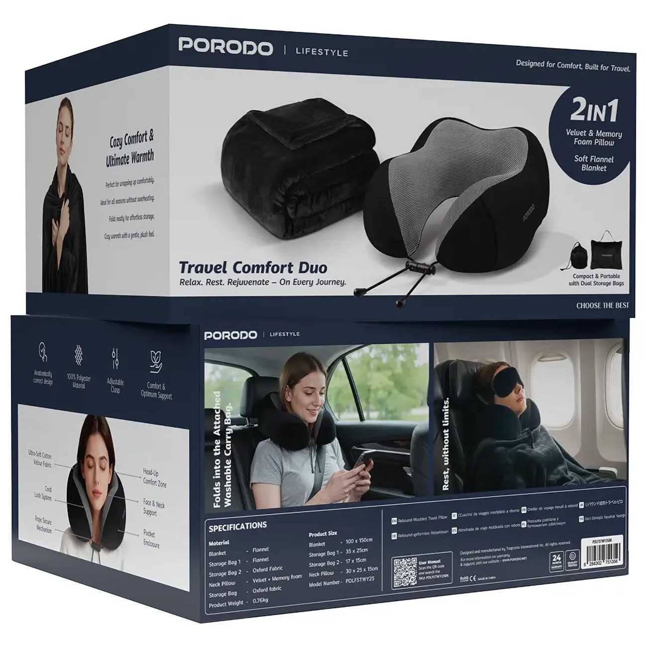 Porodo Travel Kit / Charger + 2 Power Banks + Multi-Port Cable + Car Phone Stand / Storage Bag