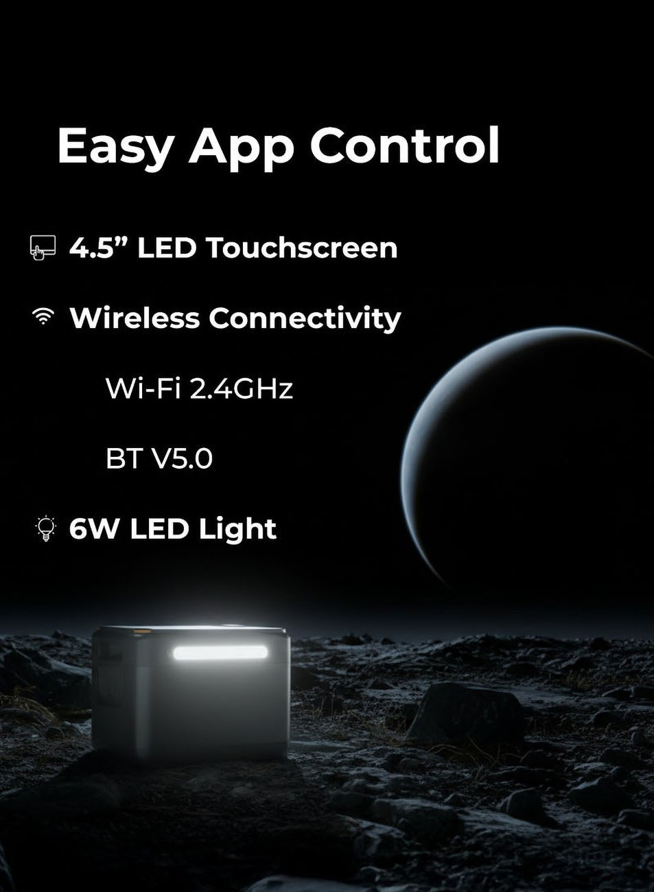 4.5-inch LED touchscreen display for monitoring device status. - Supports Solar Charging: