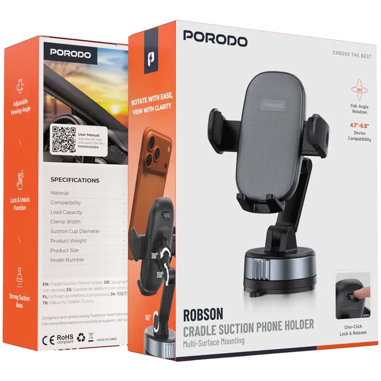 Porodo Magnetic Phone Stand / Mounts on Car Dashboard / Foldable & Rotatable / Supports MagSafe