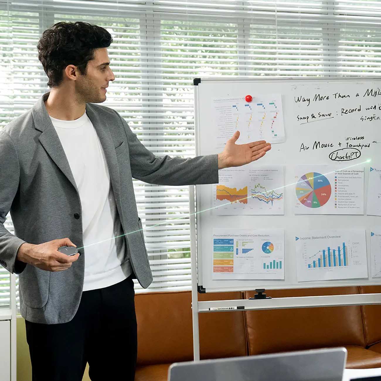 Can be used as a desktop mouse .. a presentation clicker .. and an air mouse with hand-motion control for on-screen navigation.