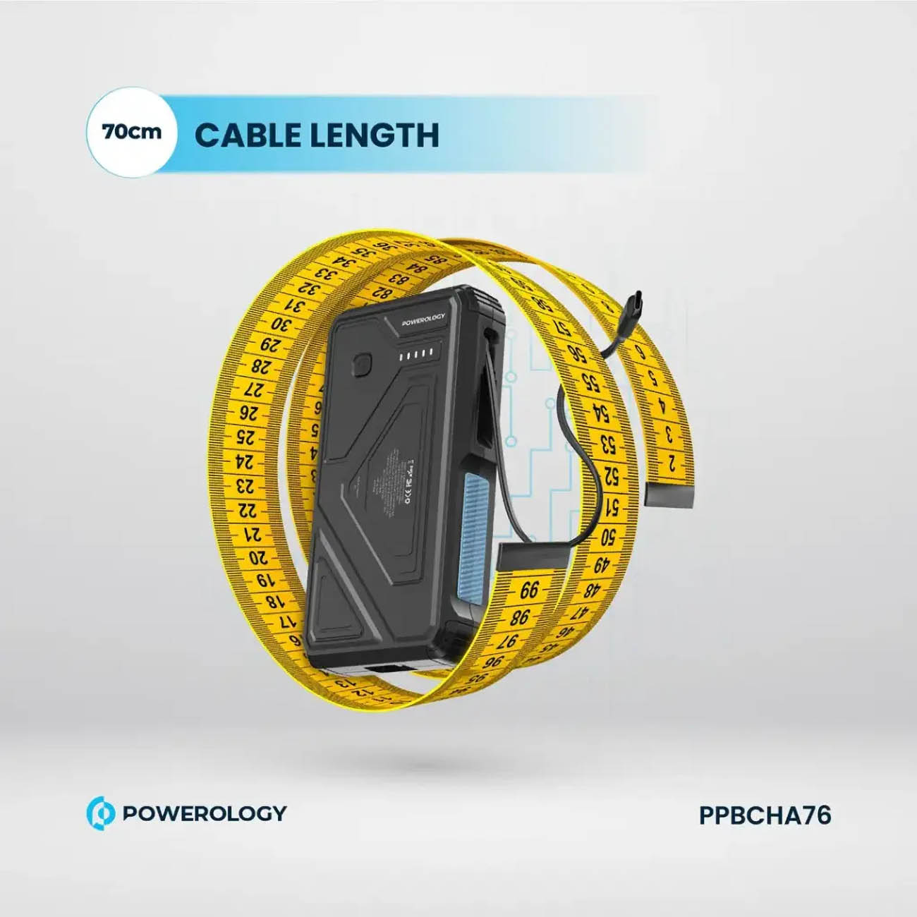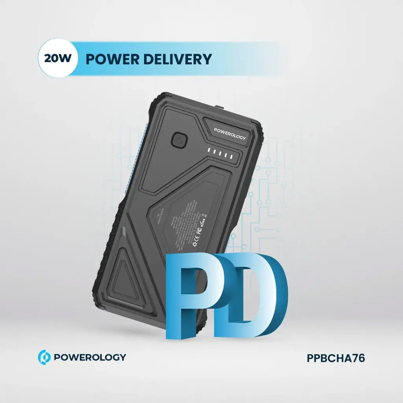 Powerology Power bank / 10,000mAh / Built-in Type-C Cable / Supports Wireless Charging / 45W Power