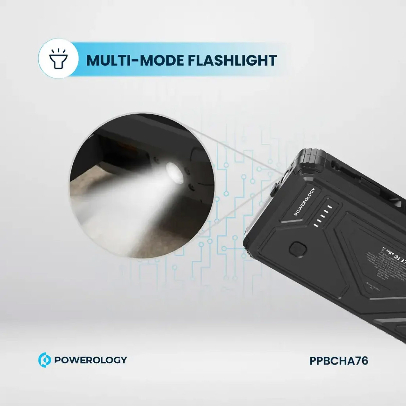 Powerology 20,000 mAh Power Bank / Type-C 7 USB-A Ports / Supports Solar Charging / Built-in Light