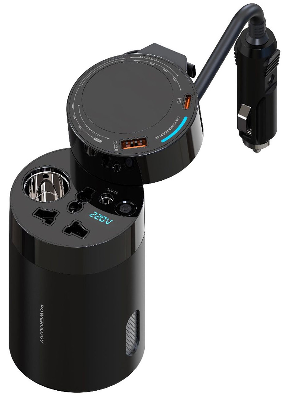 Powerology Car Power Inverter / 150W / 2 Type-C + 1 USB + Triple AC Ports