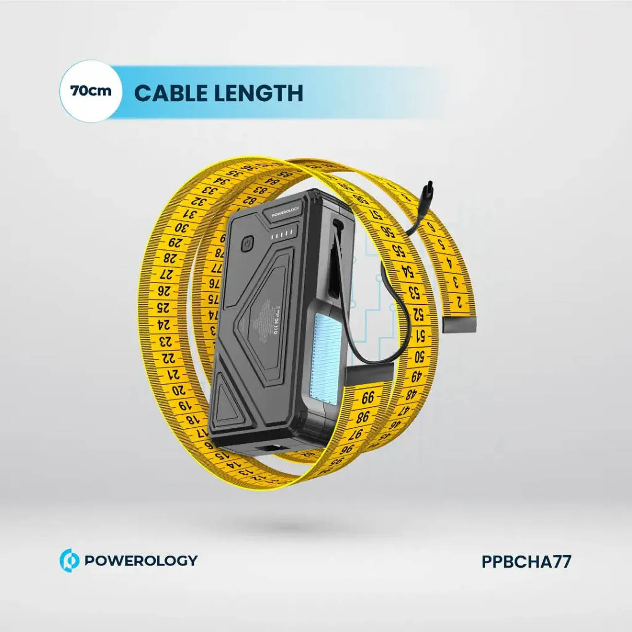 Powerology Power bank / 10,000mAh / Built-in Type-C Cable / Supports Wireless Charging / 45W Power