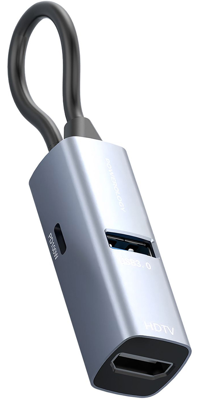 Powerology Multi-input Adapter / Small & Portable / Transparent Color / Includes Type-C Cable