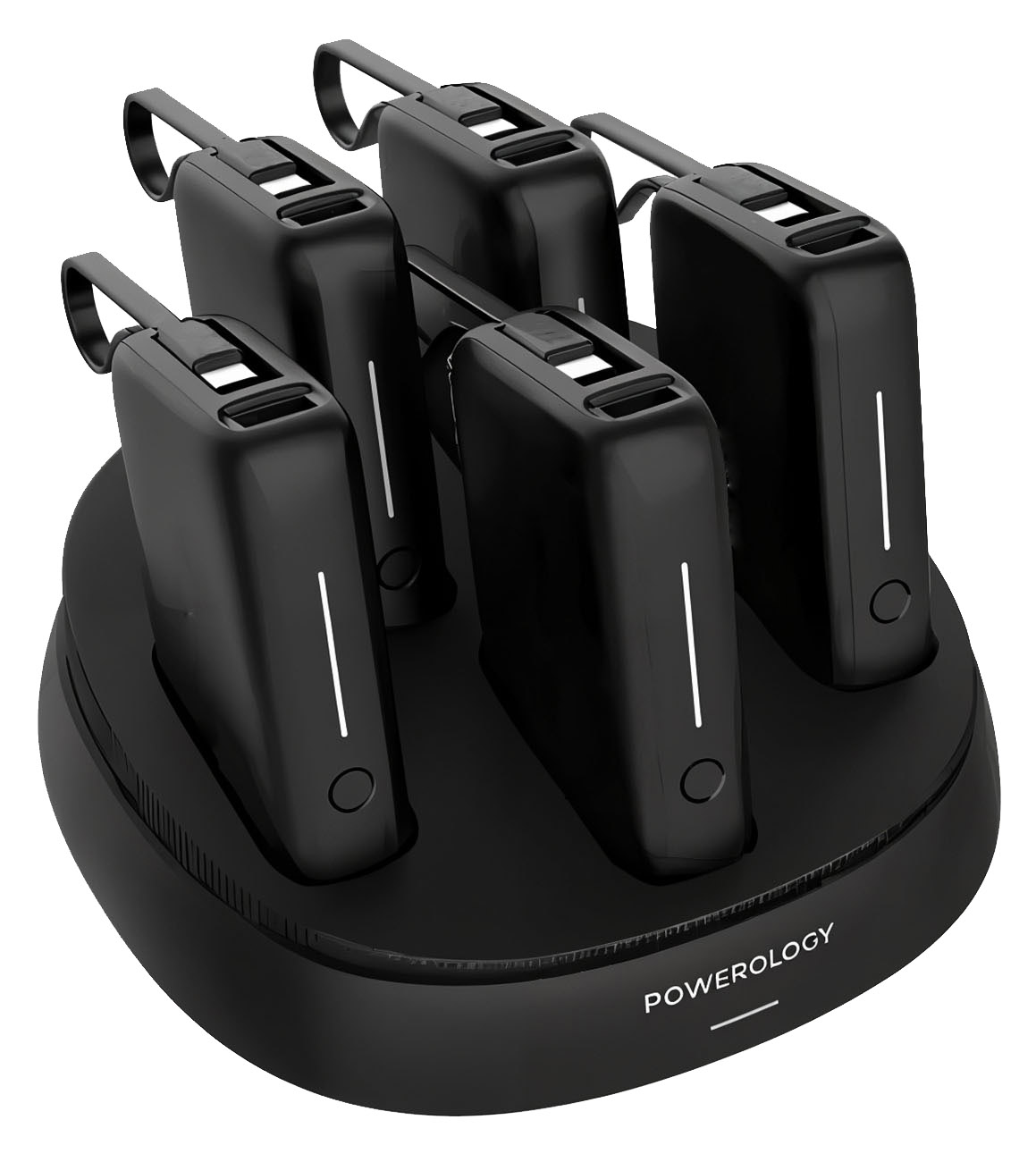 Power banks charge via the included charging dock.