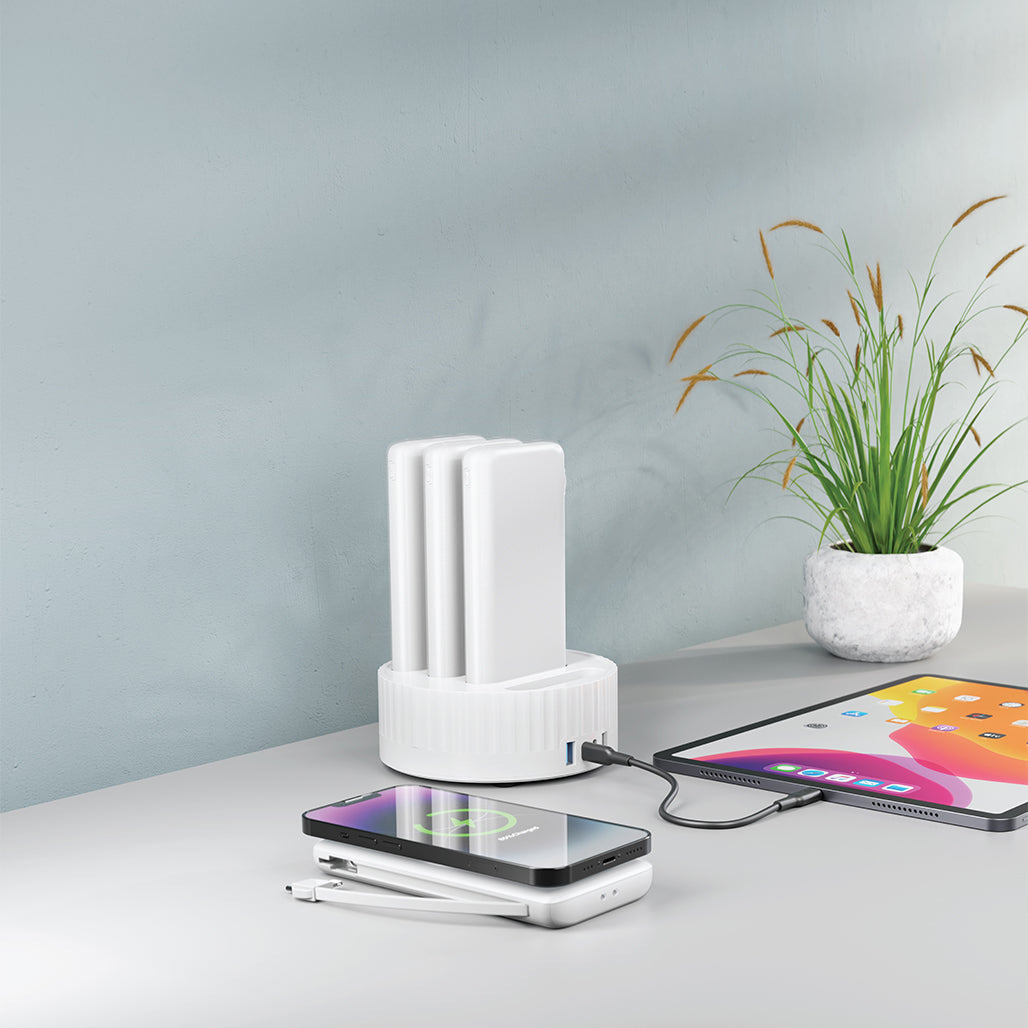 Wireless Power Bank Station with 4 batteries from Powerology.