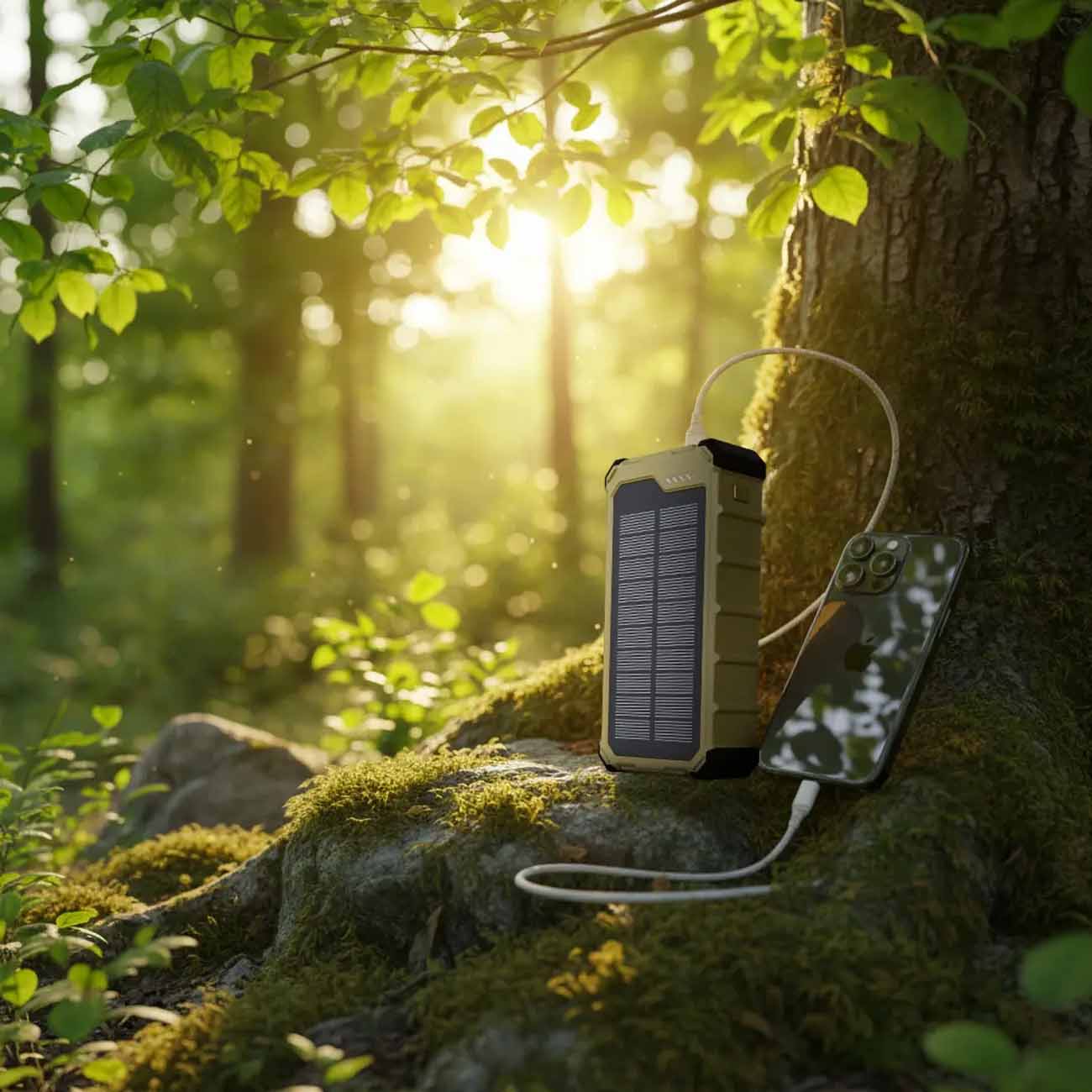 Green Wireless Power Bank 10,000mAh / Supports Solar Charging / Built-in Type-C & Lightning Cable