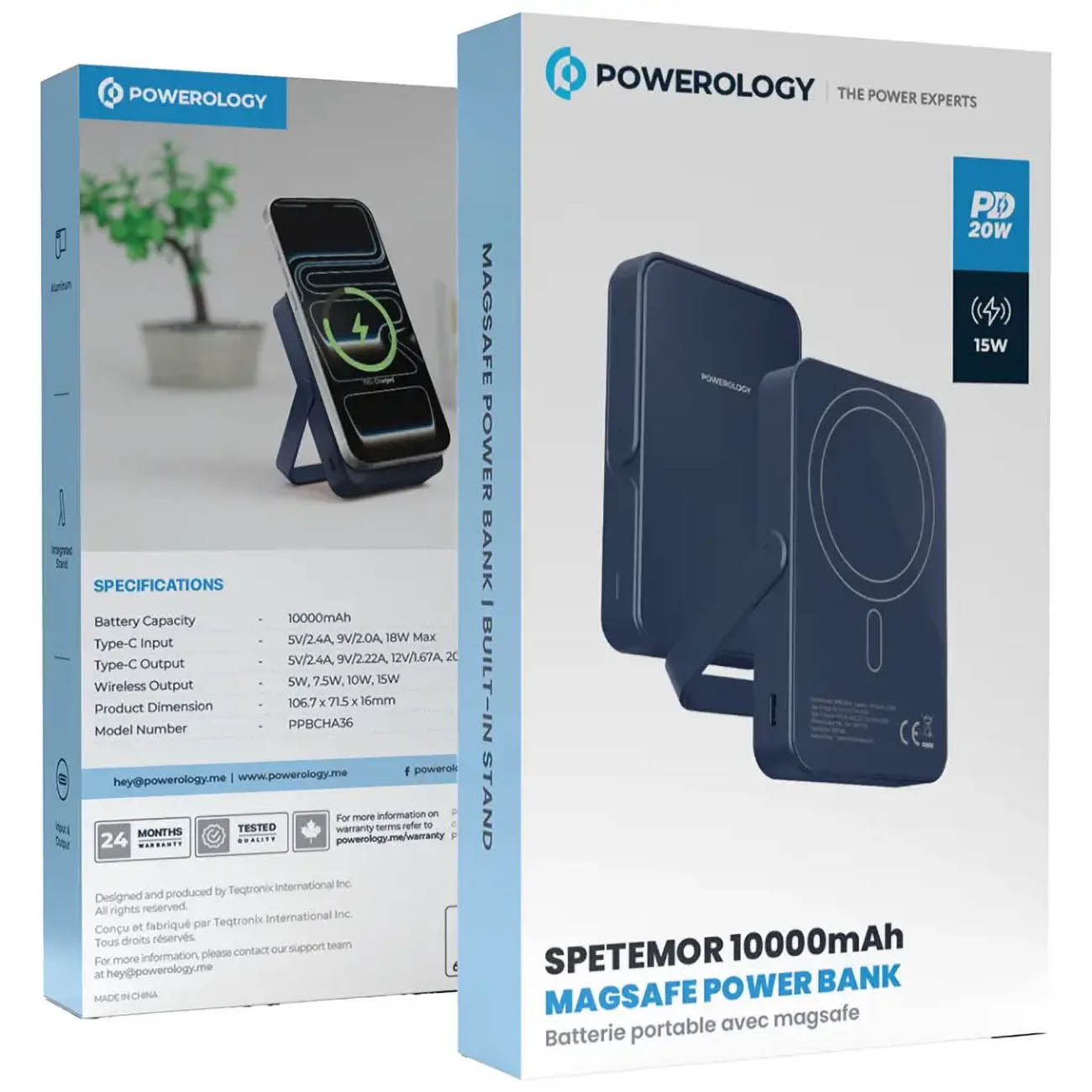 Powerology Spetemor Wireless Power Bank / 10,000mAh / Type-C Port / Built-in Stand / Grey