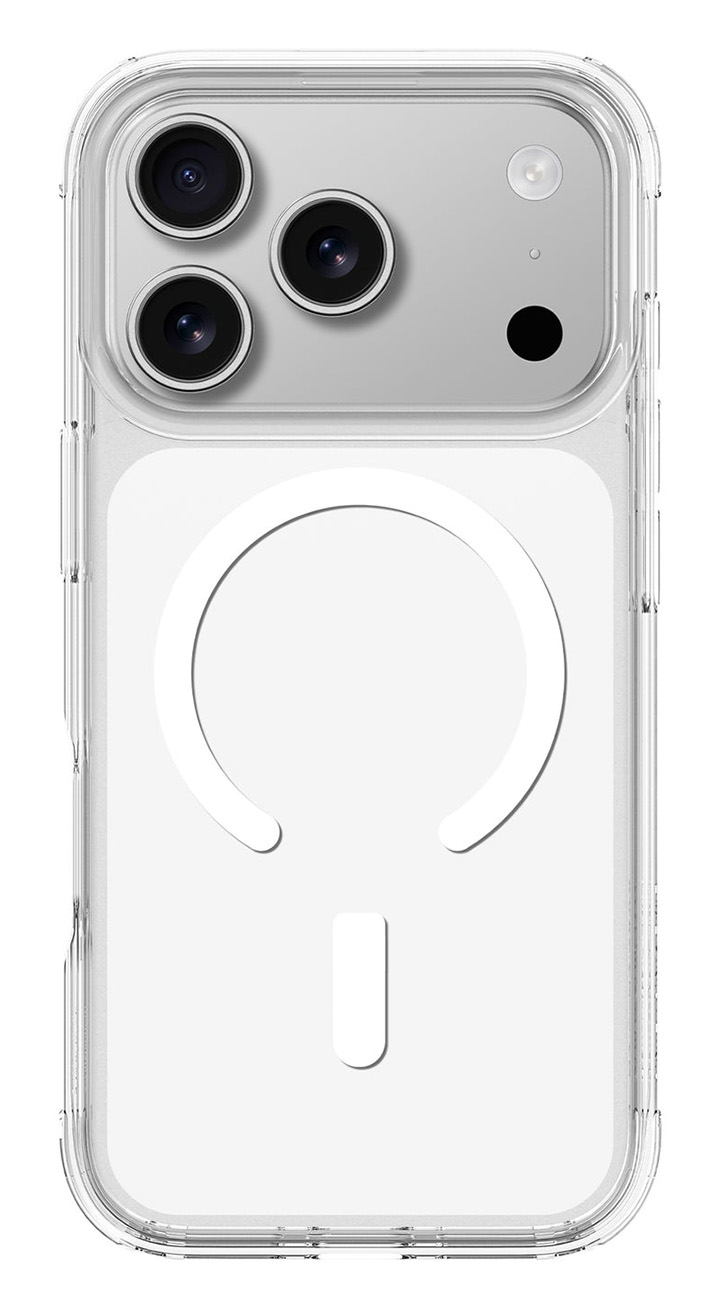 The case supports MagSafe technology for attaching magnetic chargers and accessories.