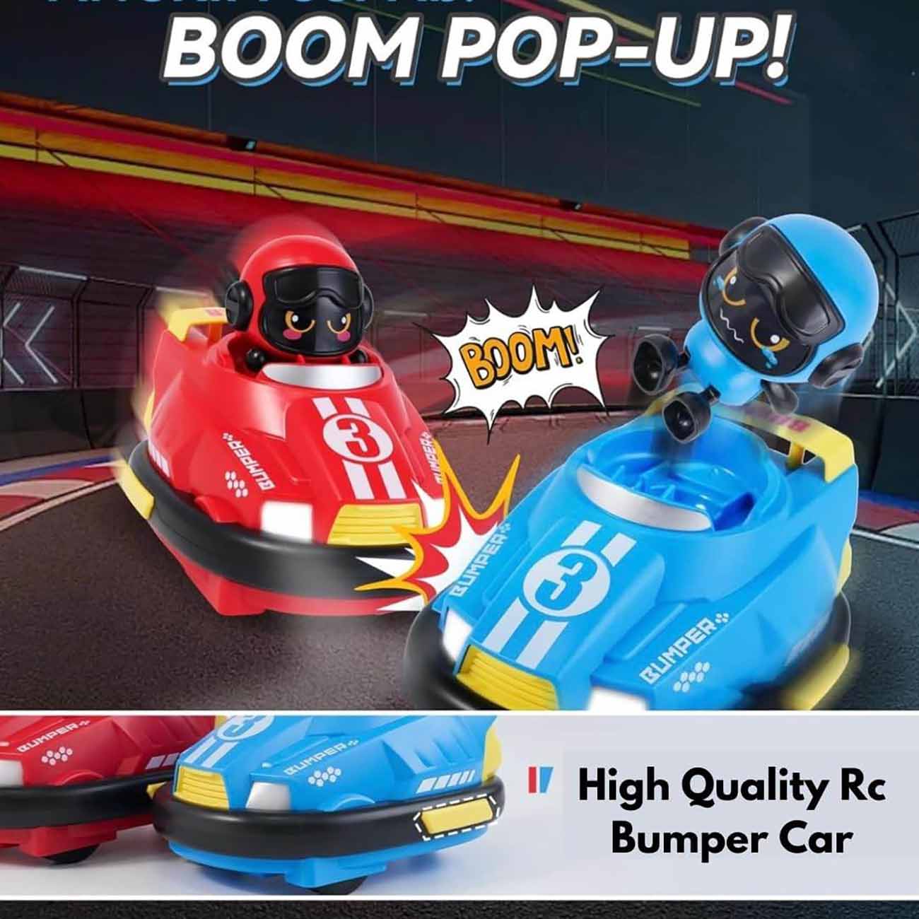 Includes 2 bumper cars and 2 remote controllers.