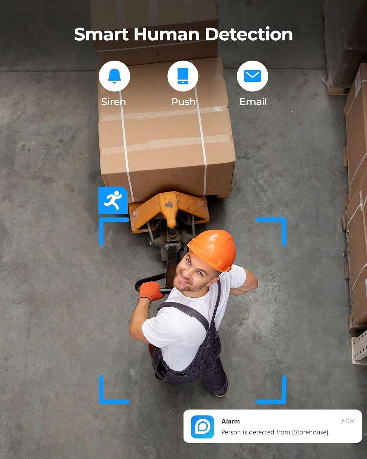 Smart motion and human detection feature, sending mobile alerts upon motion detection.