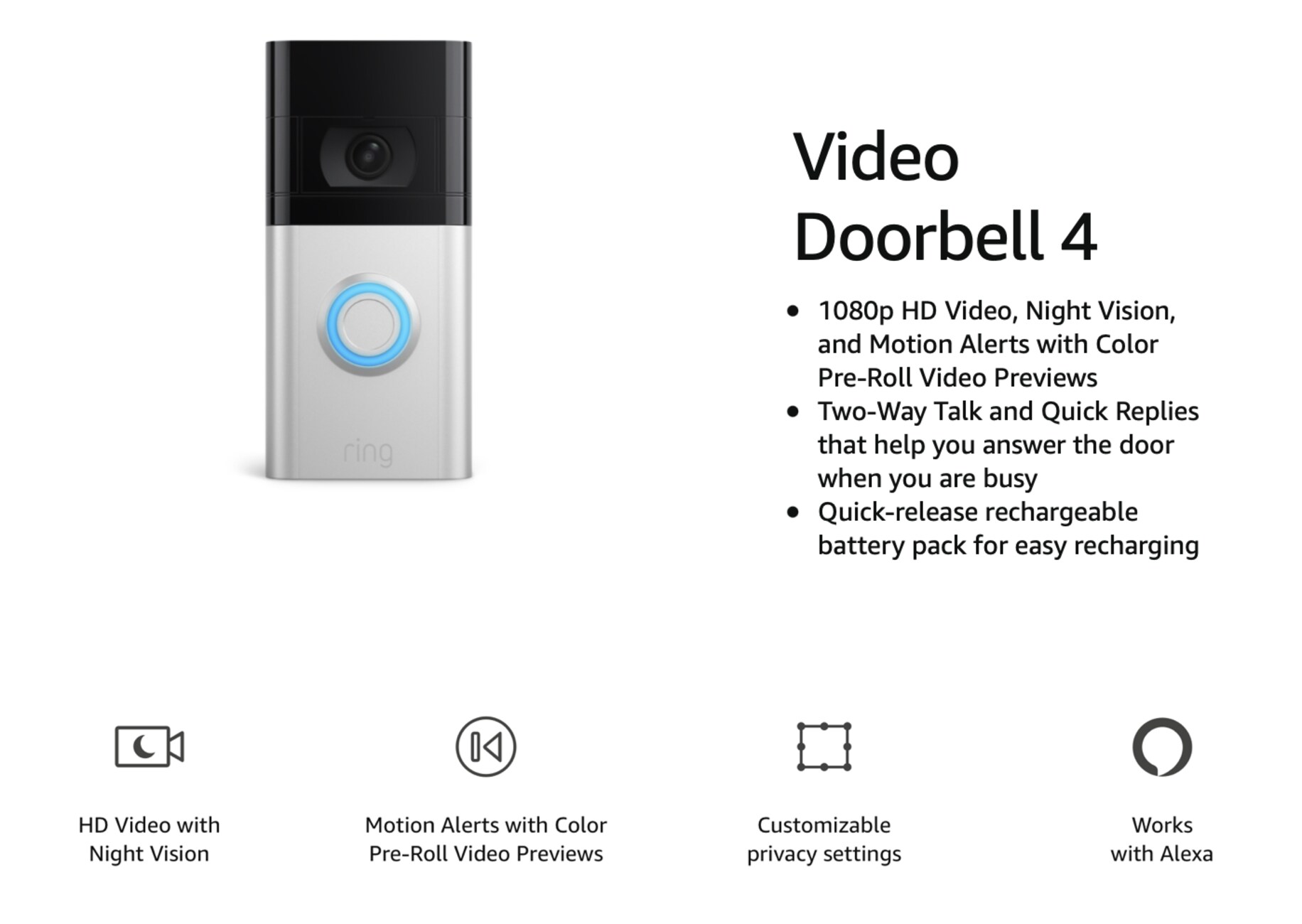 For added peace of mind, pair with Alexa to help you keep an eye on your home. Connect with Alexa to hear motion alerts on your compatible Echo device or see a Live View with an Echo Show, Fire TV, or Fire Tablet. Talk to visitors by saying, “Alexa, talk to the front door.” With a Ring Protect plan (subscription sold separately), Alexa can also make voice announcements and automatically show live video feed on an Echo Show, Fire TV, or Fire Tablet when your Ring Video Doorbell detects a person.
