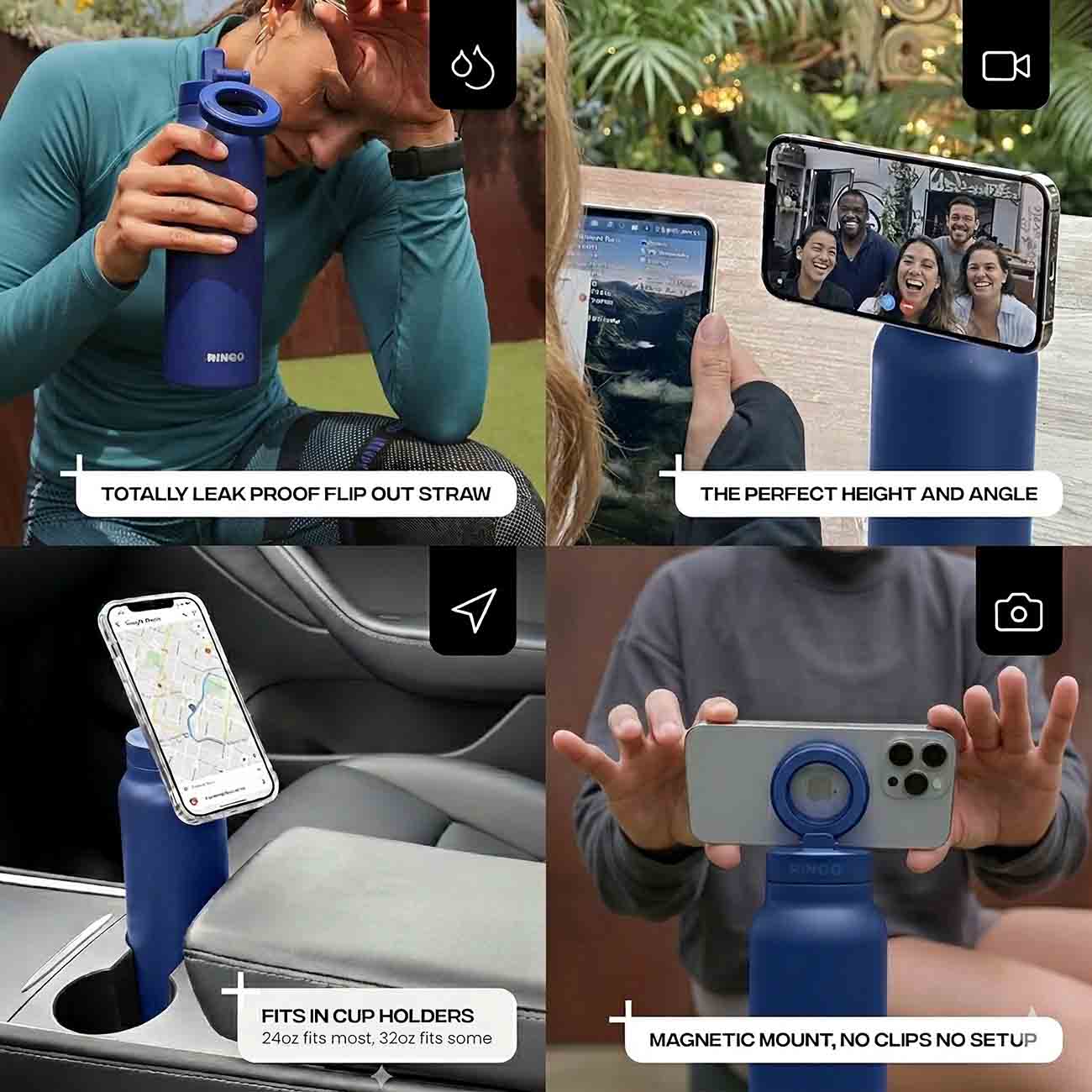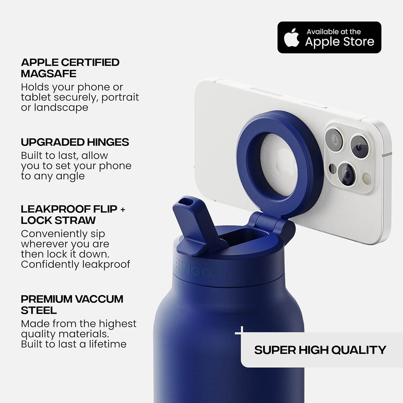 Ringo Pro Bottle with Phone Stand / 24oz Capacity / Support MagSafe / Keeps Drinks Cold / Black