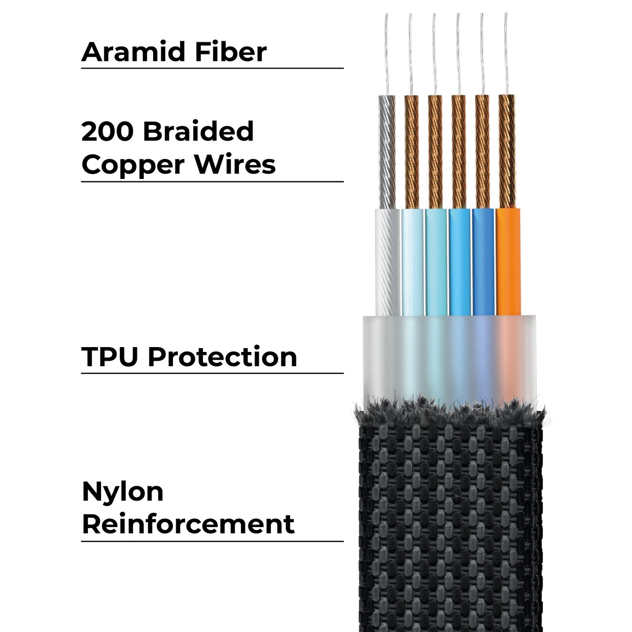 ULTRA TOUGH: Made with high-quality materials, including a zinc-aluminum alloy metal housing, TPU cable guard, and 200 braided copper wires.