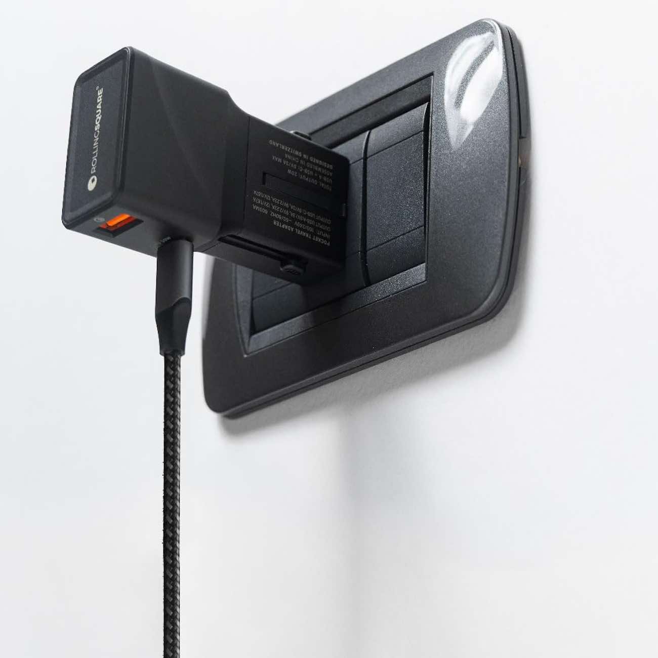 This Rolling Square charger is perfect for travel, offering 4 different global inputs.