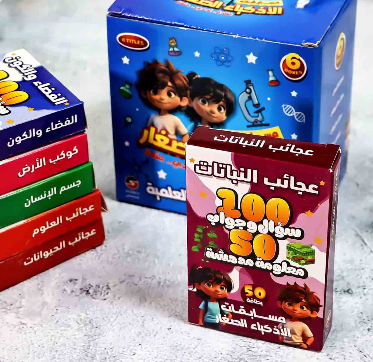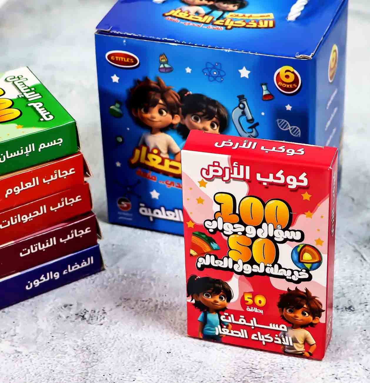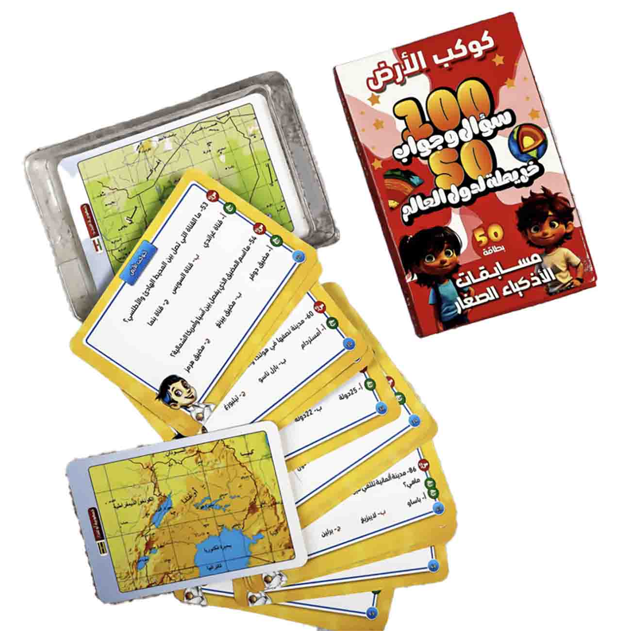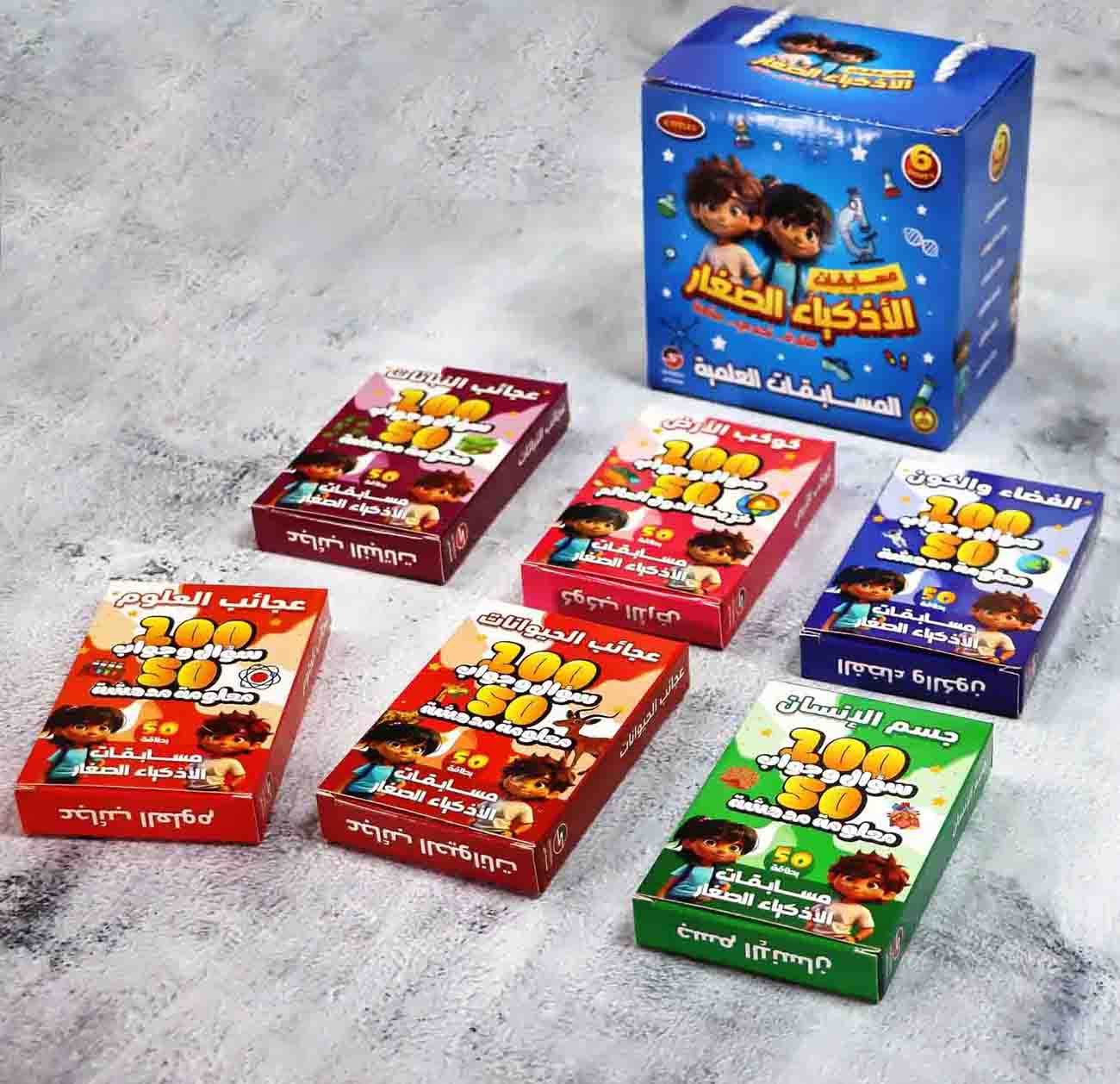 Each box contains 50 cards .. with a question and answer on one side and an image with simplified information on the other.
