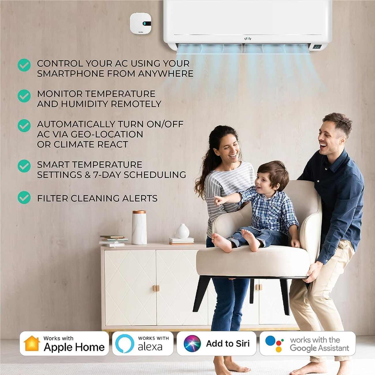 Smart remote that turns any air conditioner into a smart one, acting as a replacement for the standard remote.