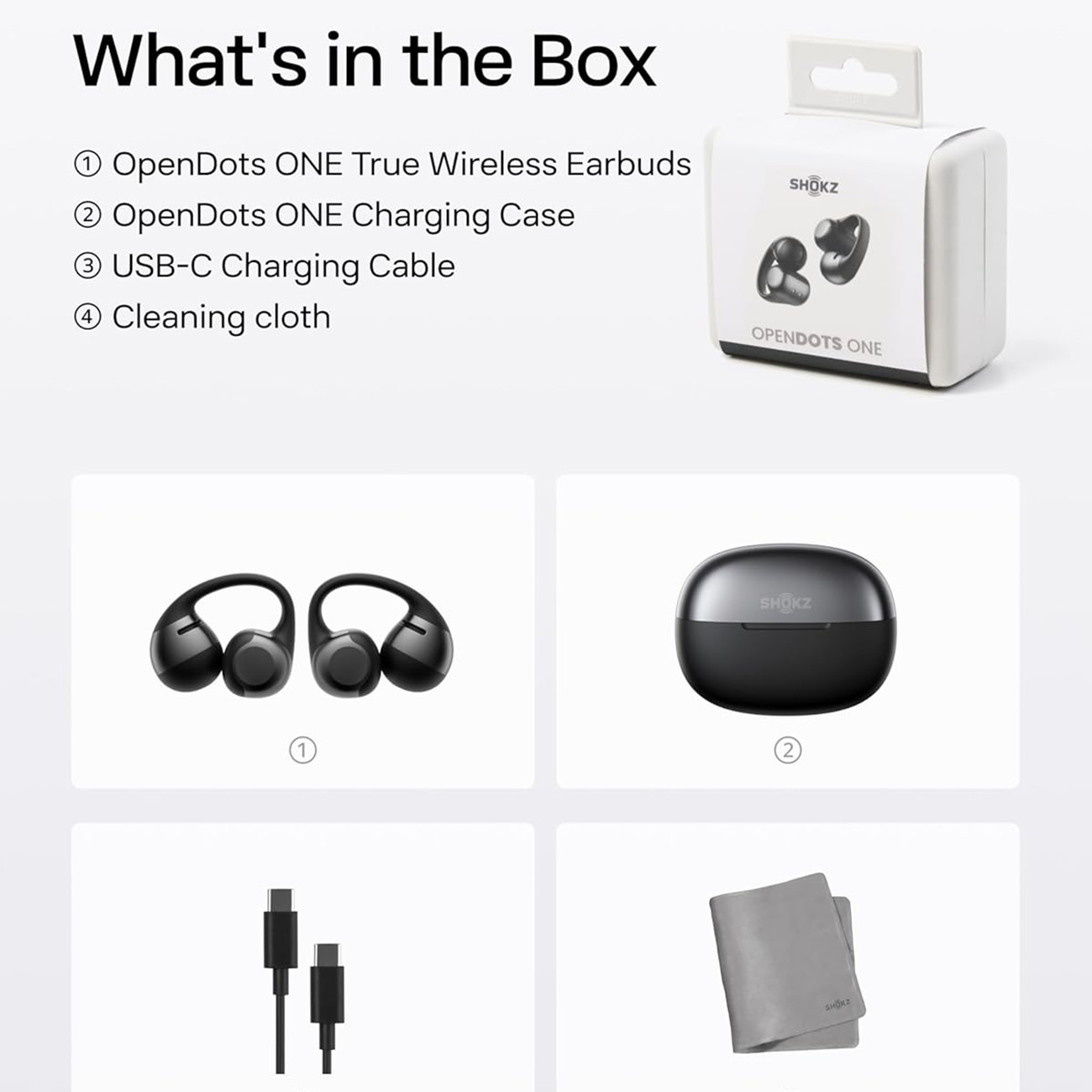 سماعة OpenDots ONE اللاسلكية من Shokz / تدعم الشحن اللاسلكي / 40 ساعة استخدام / اسود
