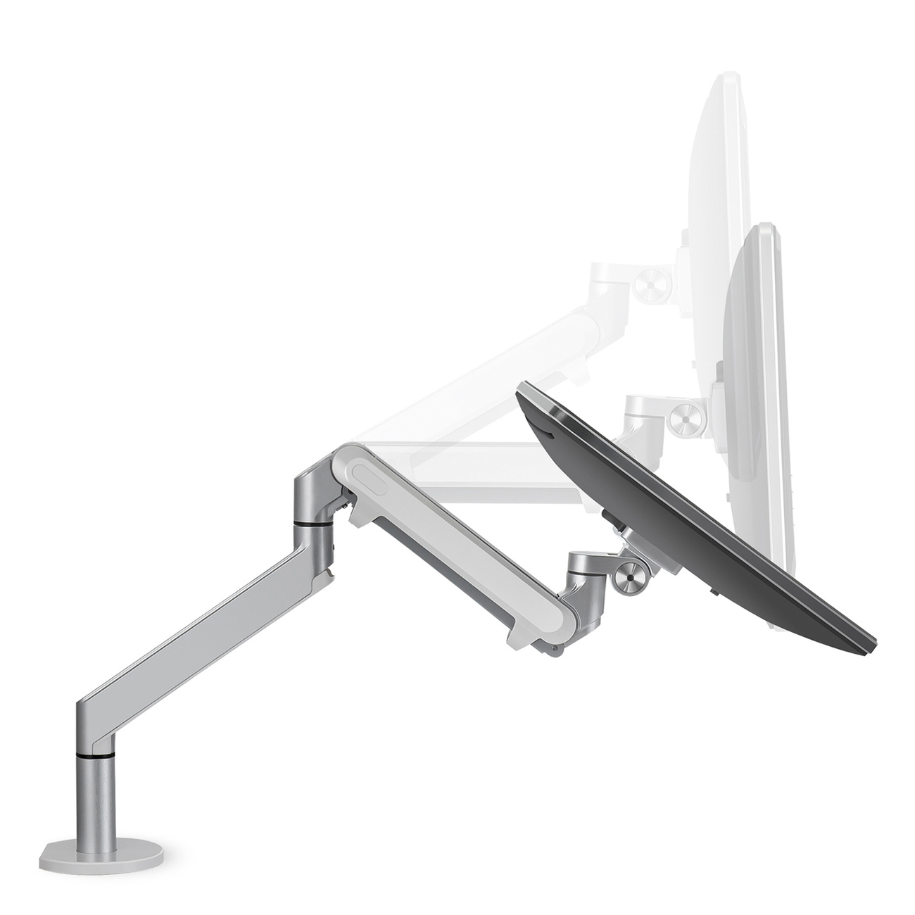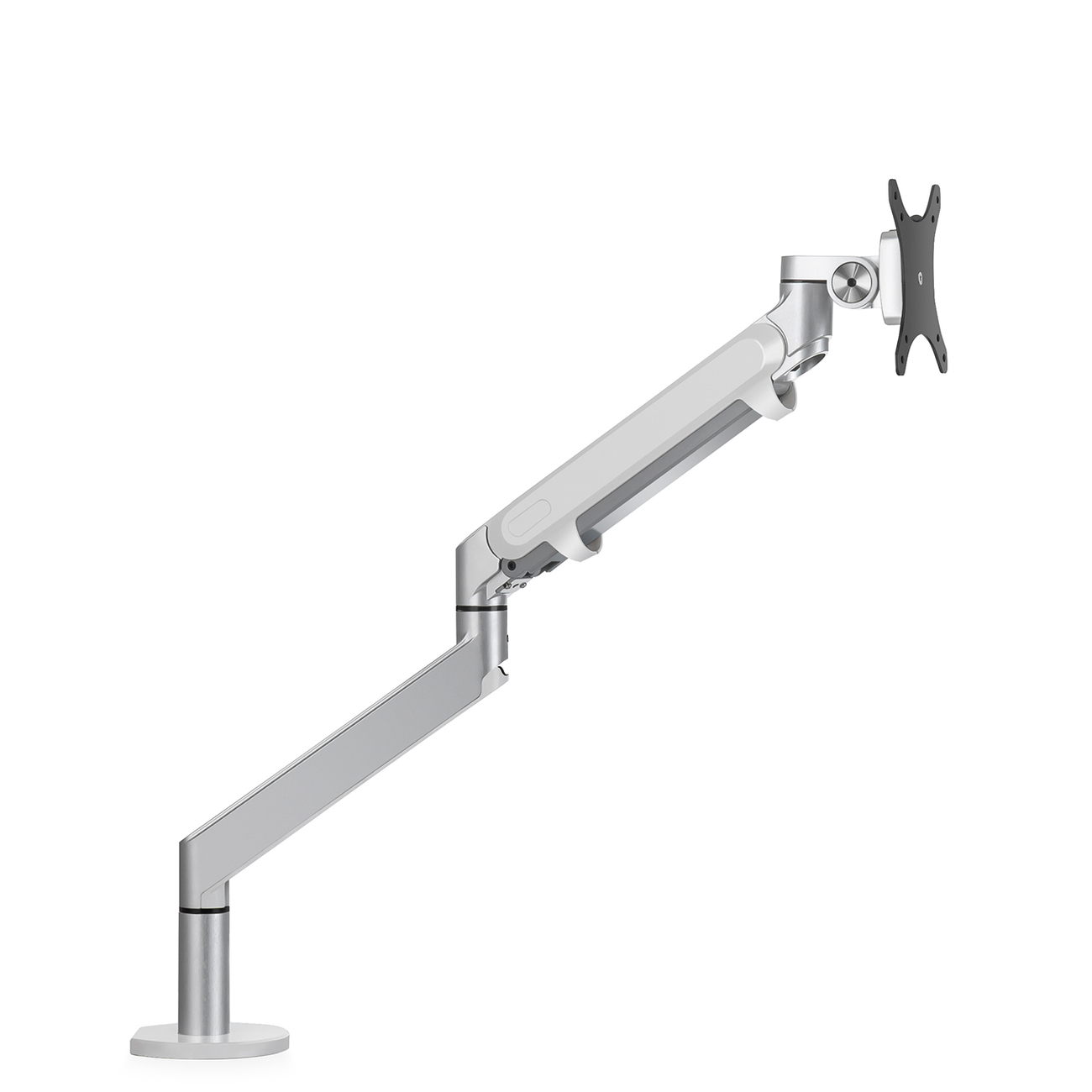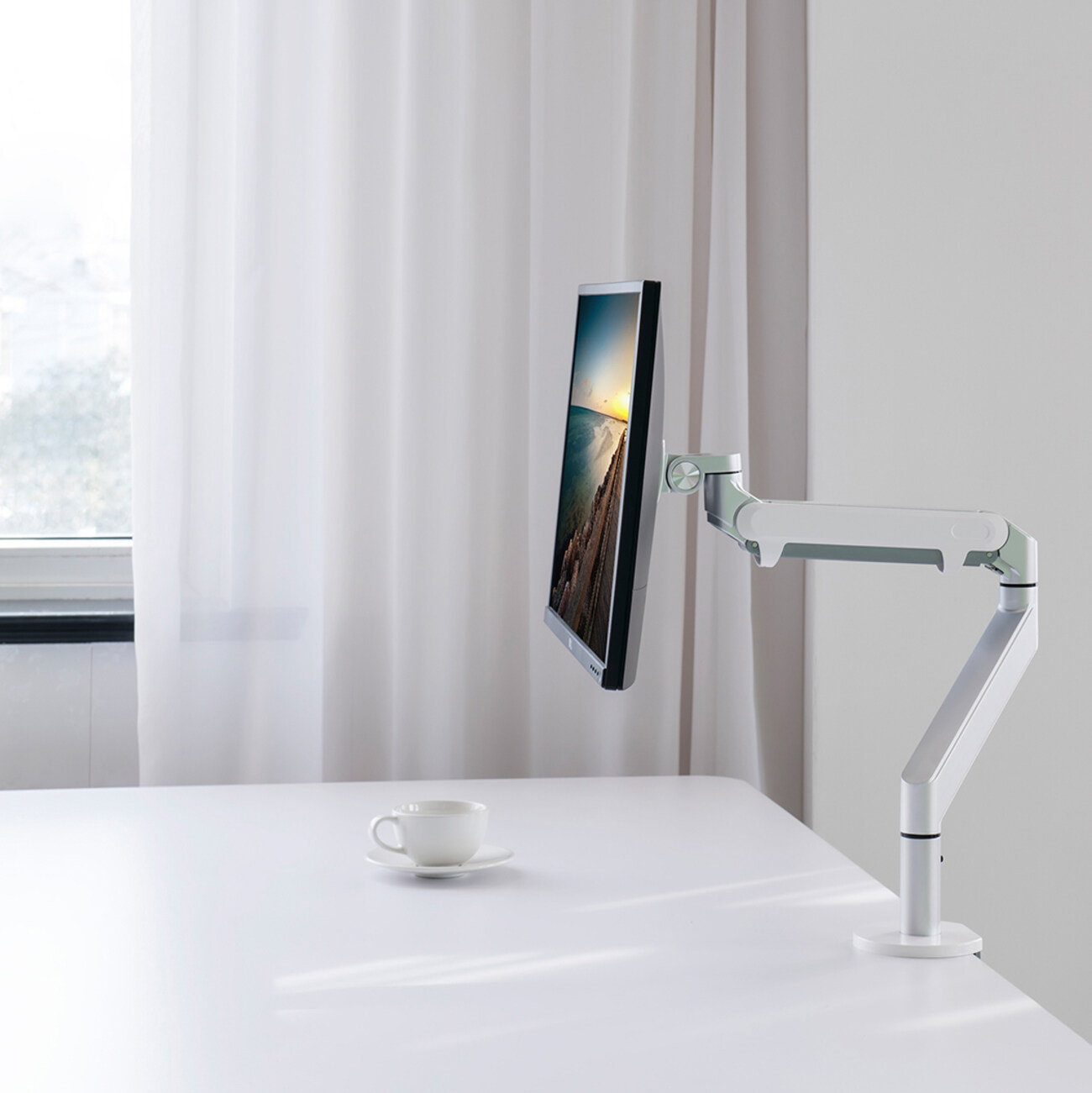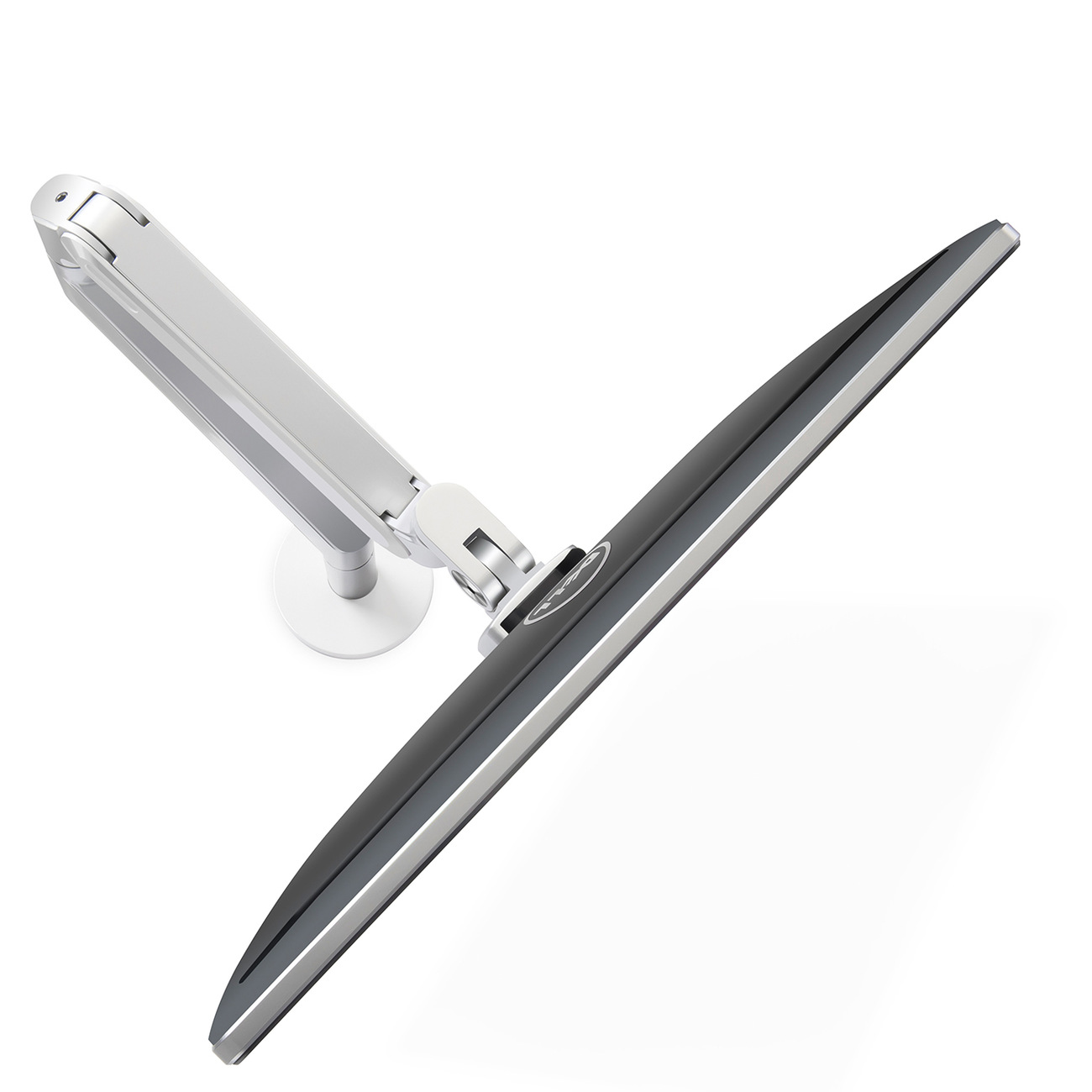 Flexible screen stand that securely attaches your screen to the desk, allowing for practical and easy angle adjustments.