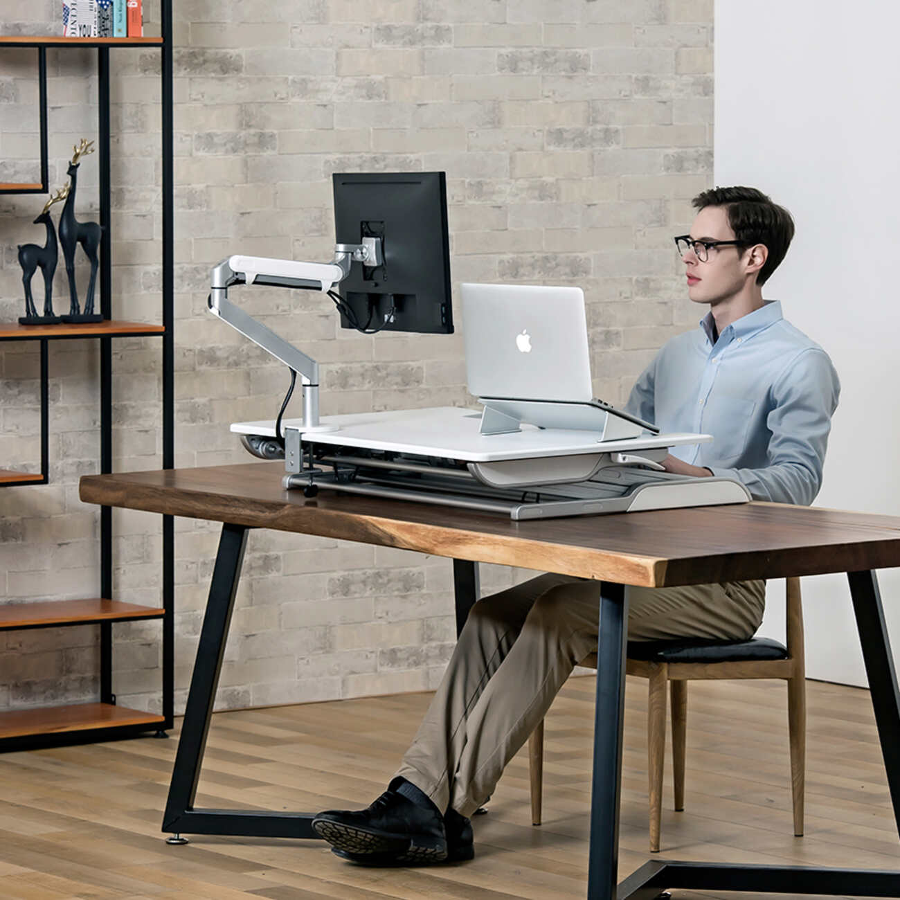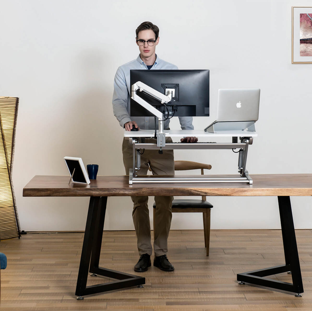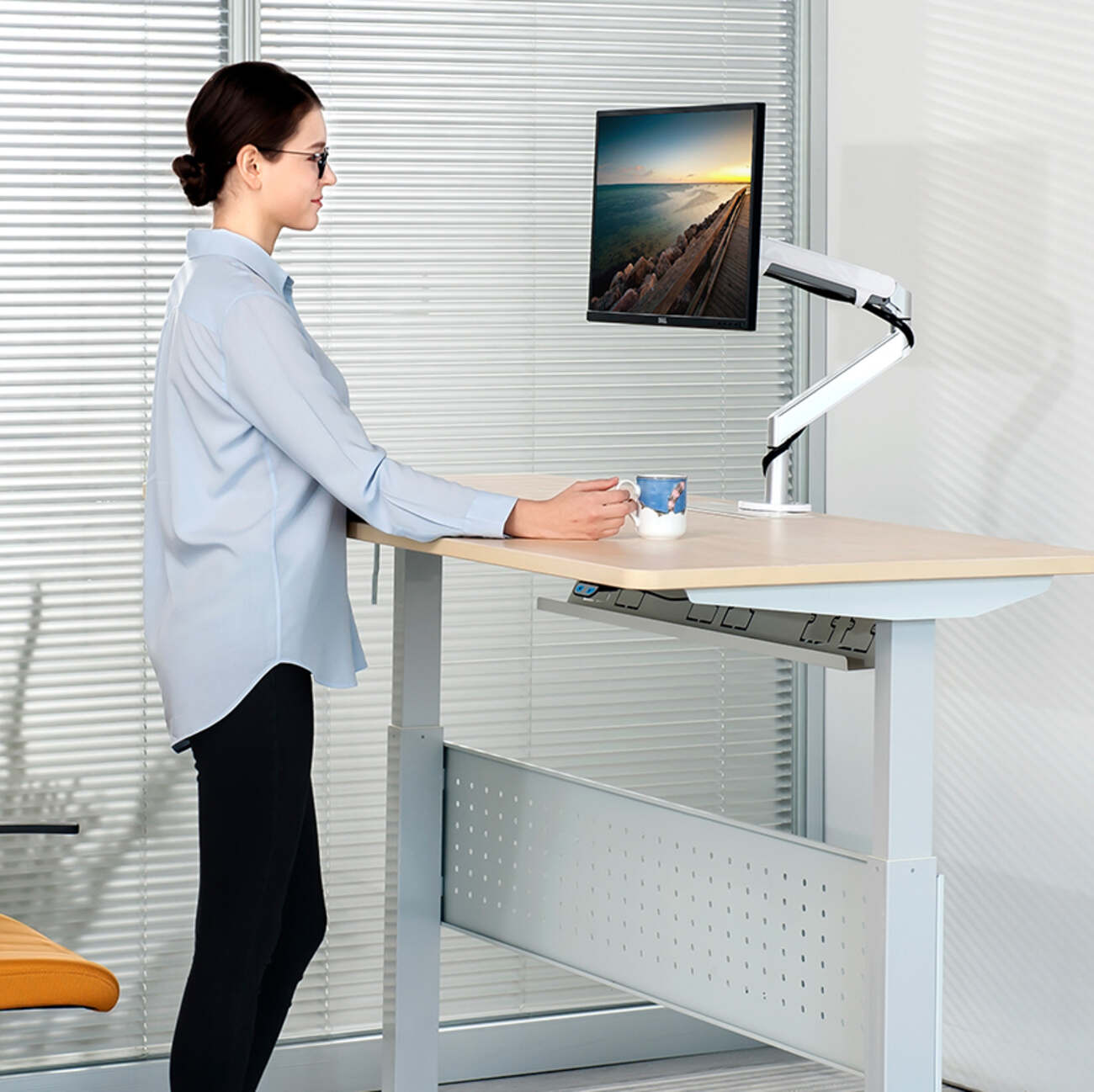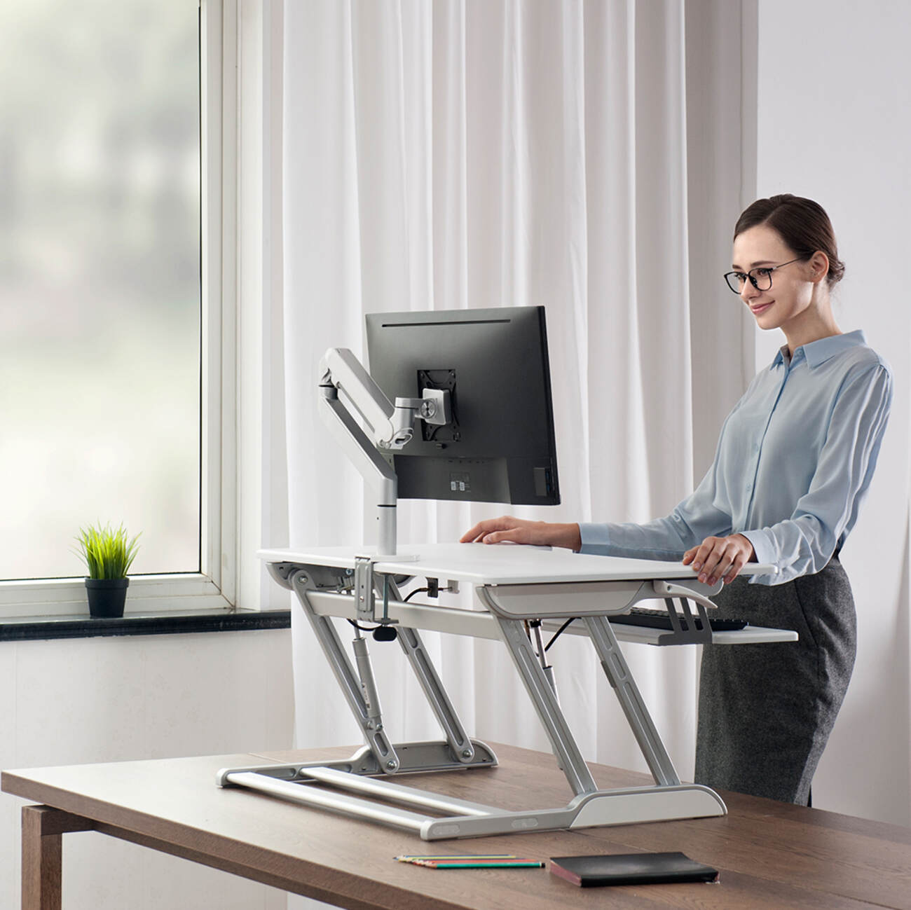 Flexible screen stand that securely attaches your screen to the desk, allowing for practical and easy angle adjustments.