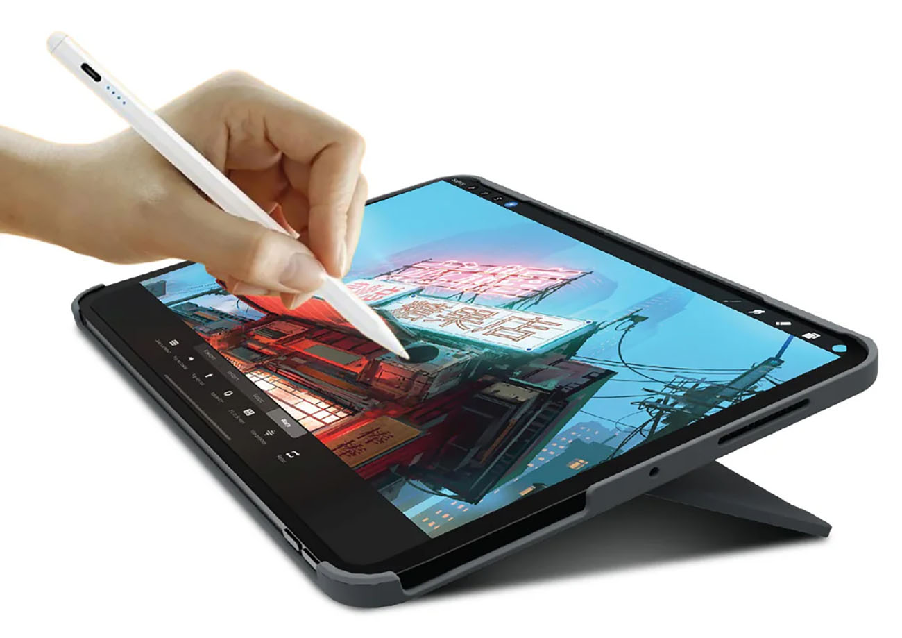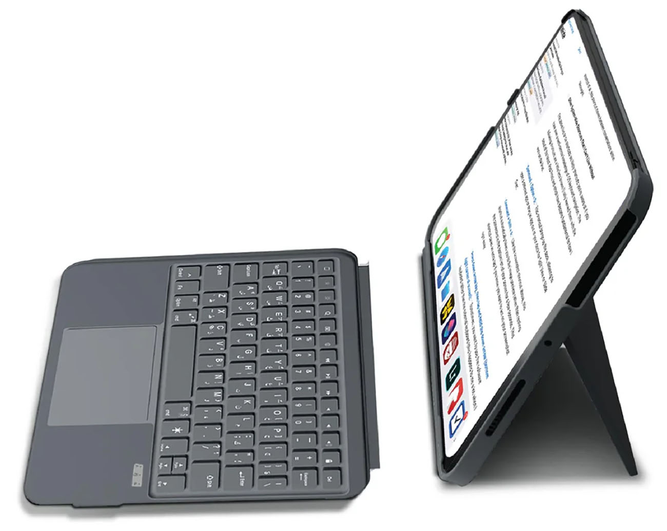 Comes with a trackpad that works with the iPad.