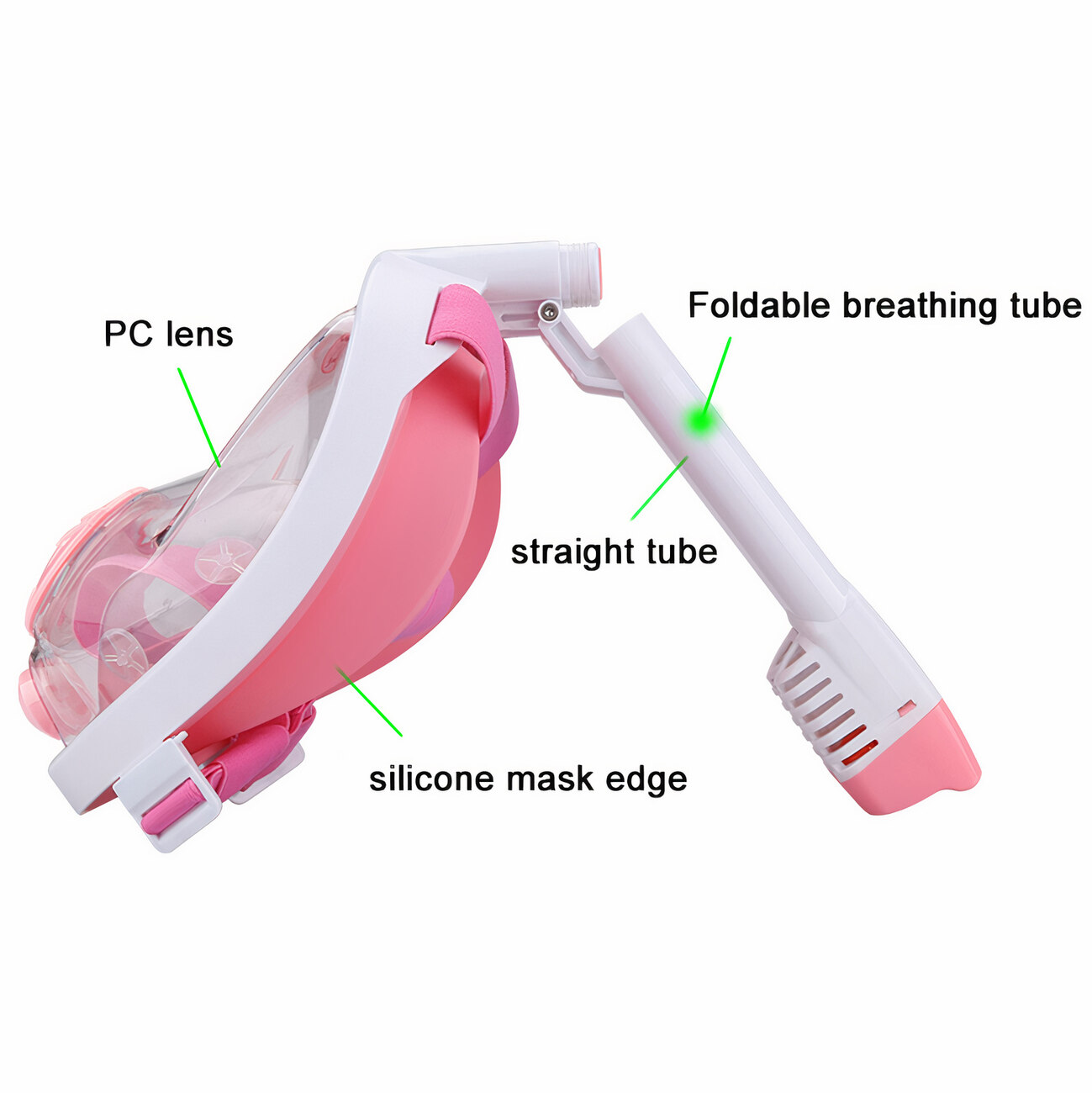 Full face snorkeling mask for easy breathing through mouth or nose.