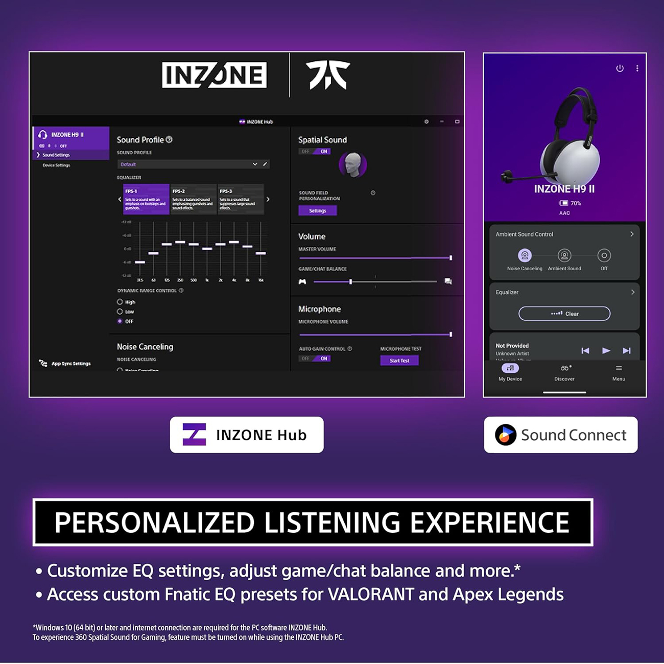 Sony INZONE H9 II Gaming Headset / Wireless / Surround Sound / Noise Cancelling / White