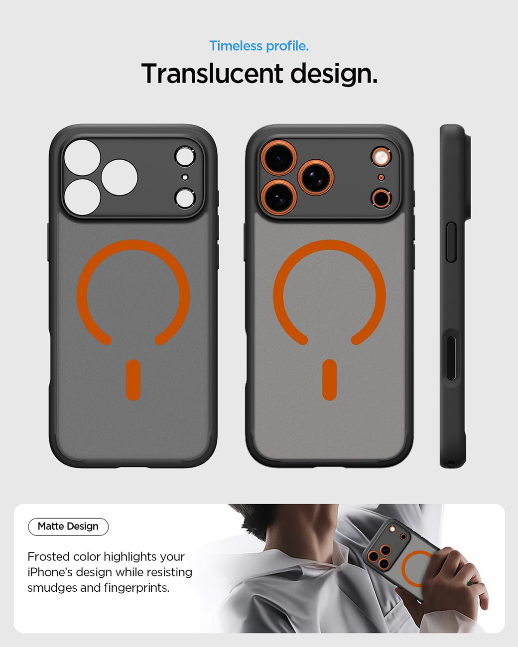 Spigen Ultra Hybrid Case for iPhone 17 Pro / Supports MagSafe / Frost Black Orange