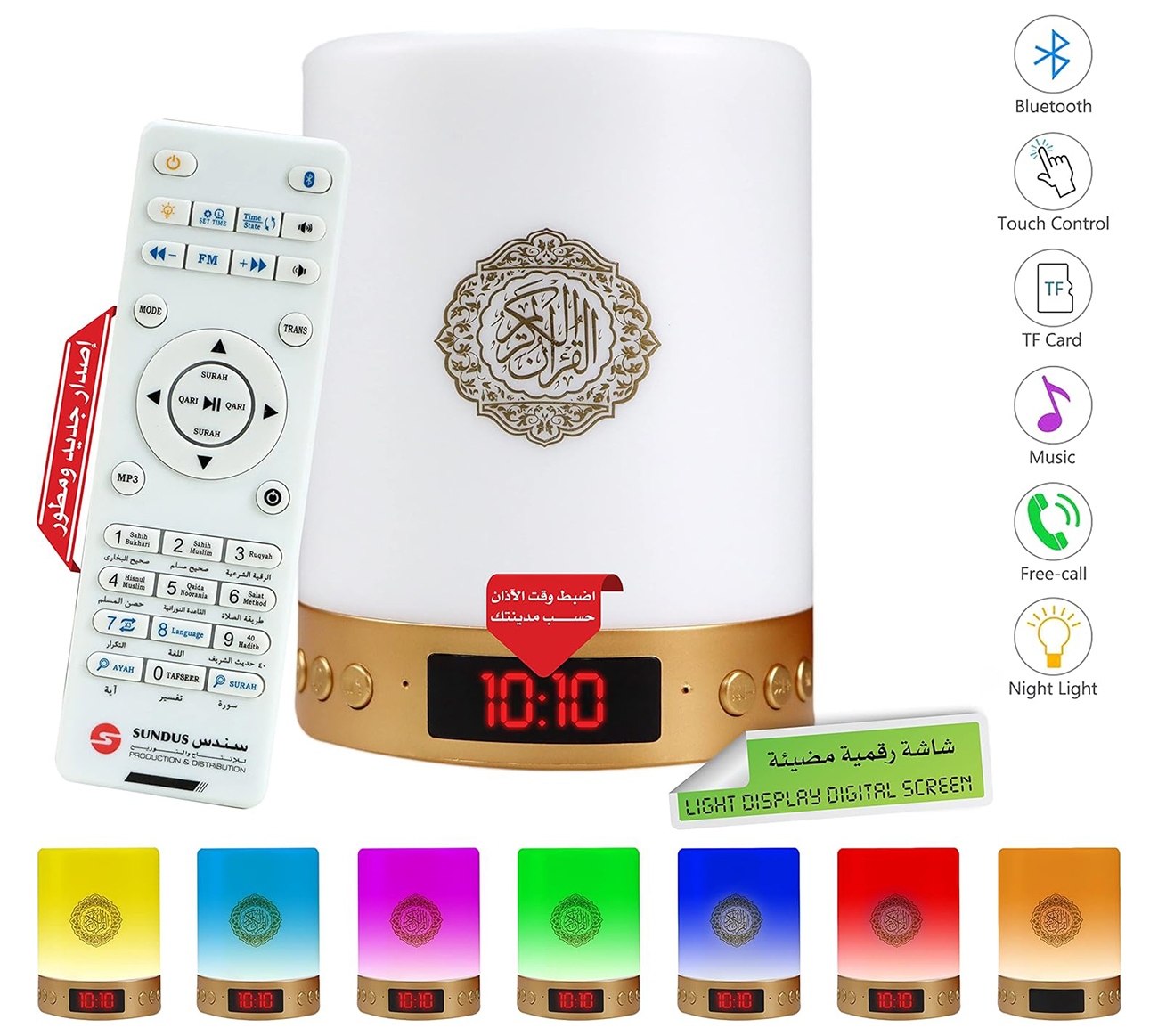 Sundus Holy Quran Speaker / With Built-in Light / Tafsir + Duas + Adhkar + Ruqyah / With Adhan