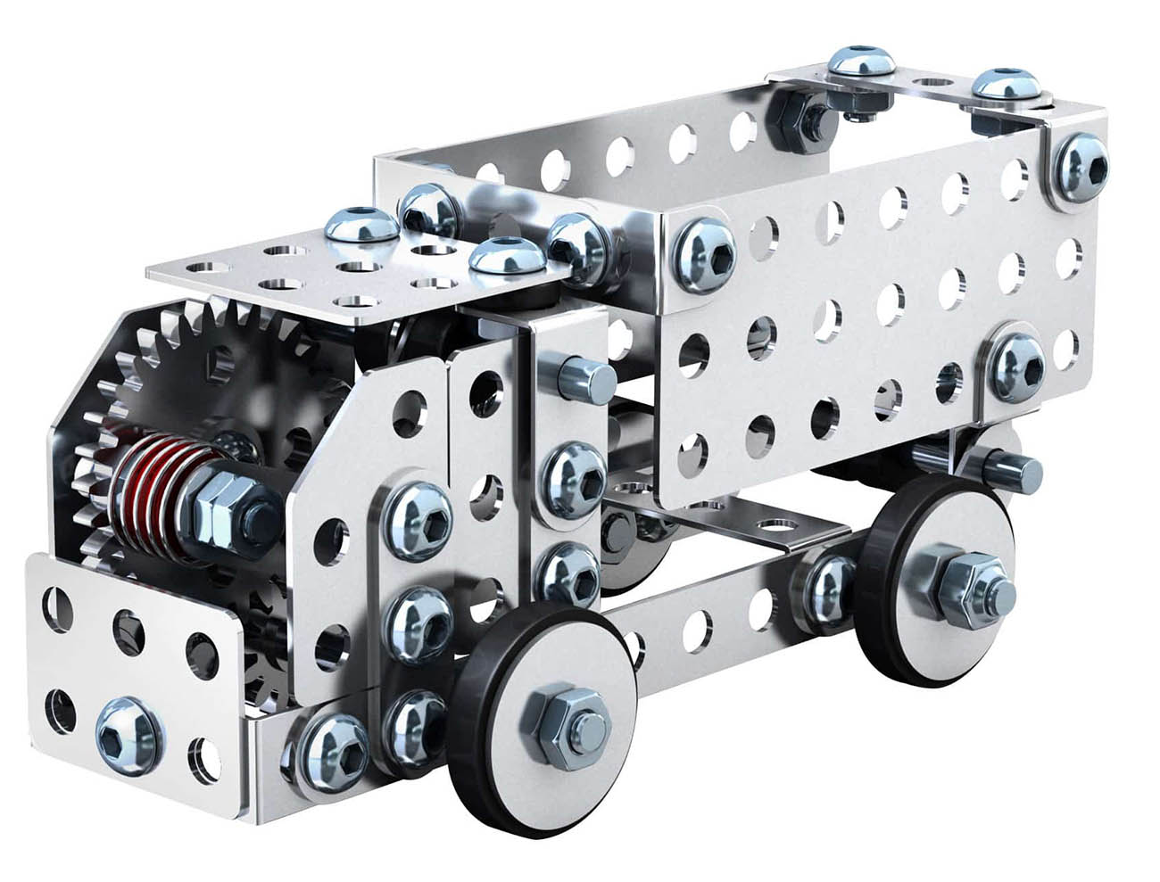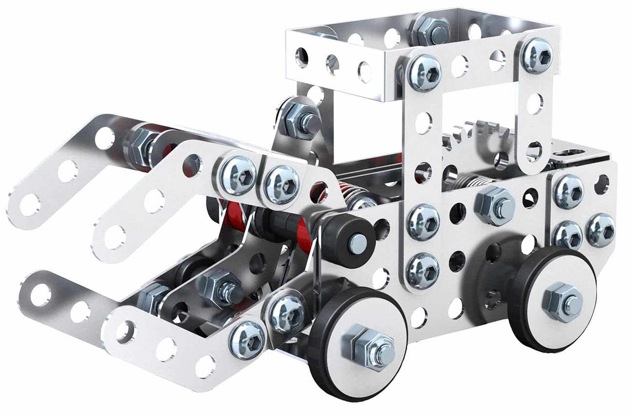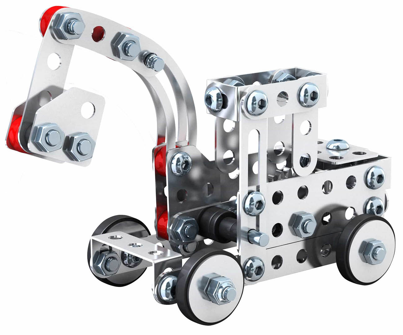 Includes over 300 steel pieces allowing you to build various models like tractors .. construction vehicles .. trucks and more.