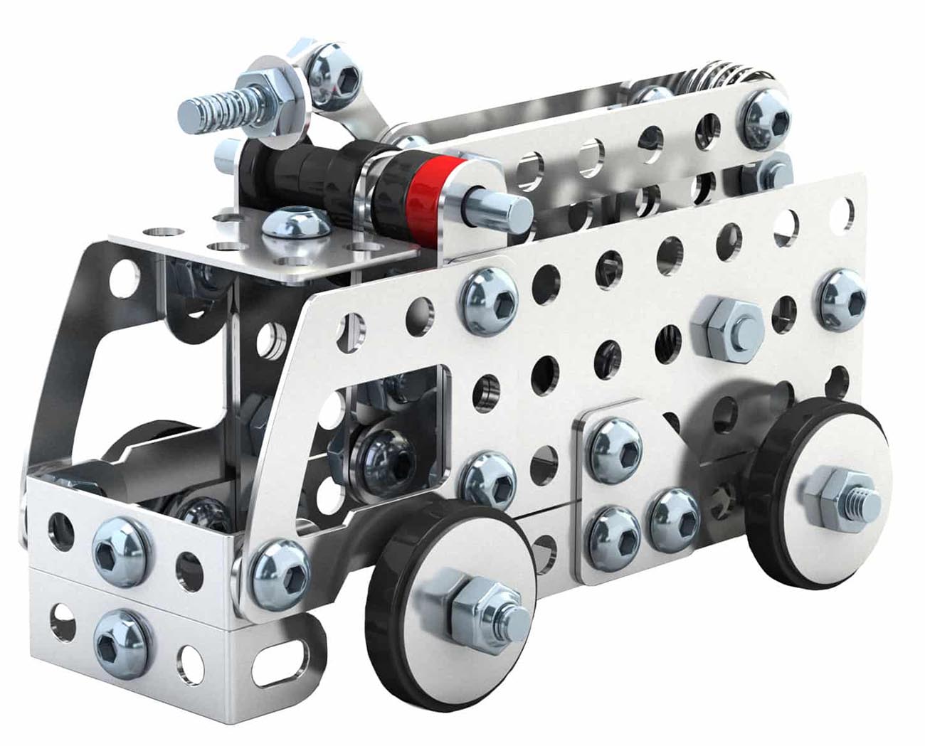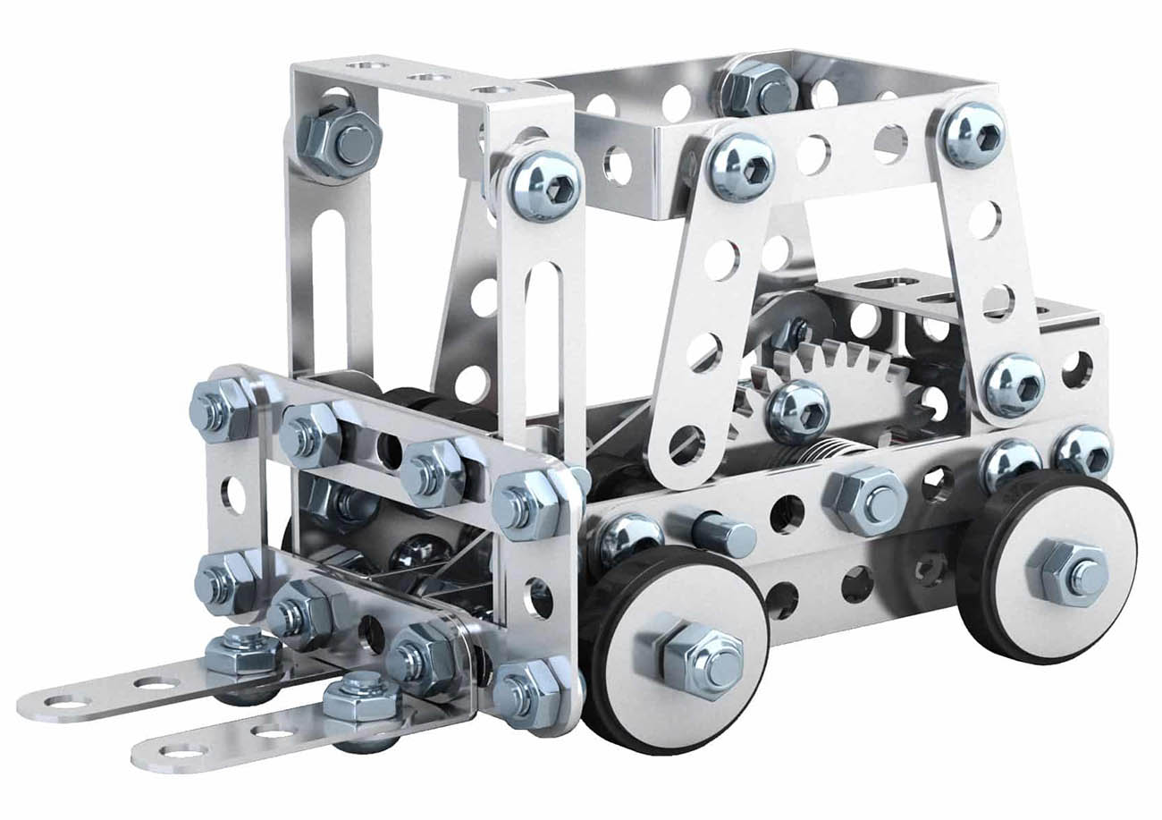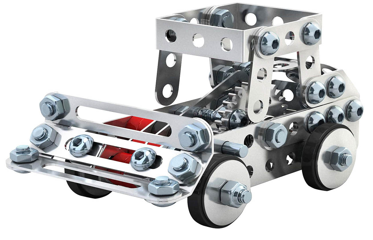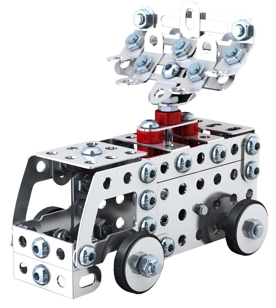 Includes over 300 steel pieces allowing you to build various models like tractors .. construction vehicles .. trucks and more.