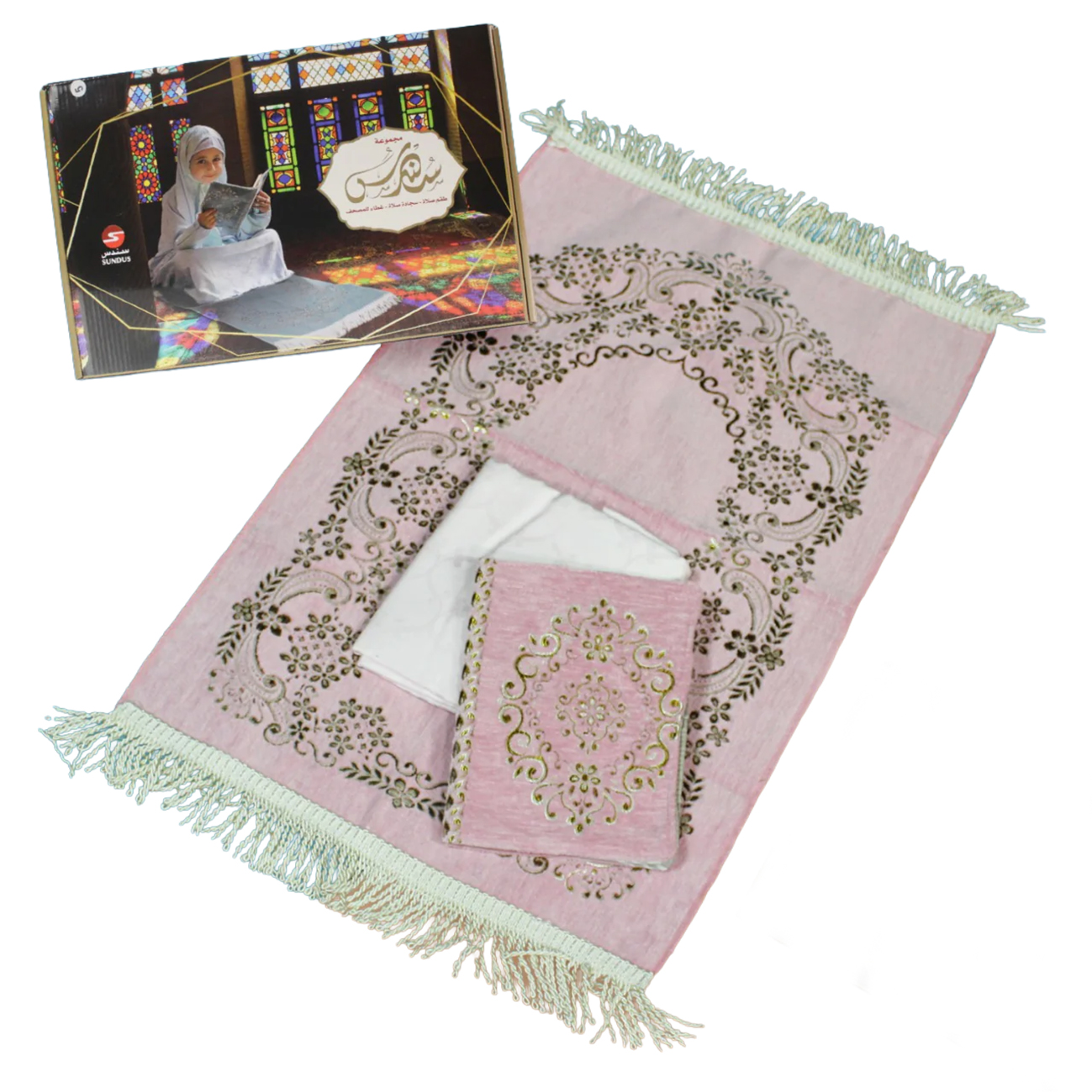 Sundus Prayer Set / Prayer Mat + Prayer Dress + Quran Cover / Pink